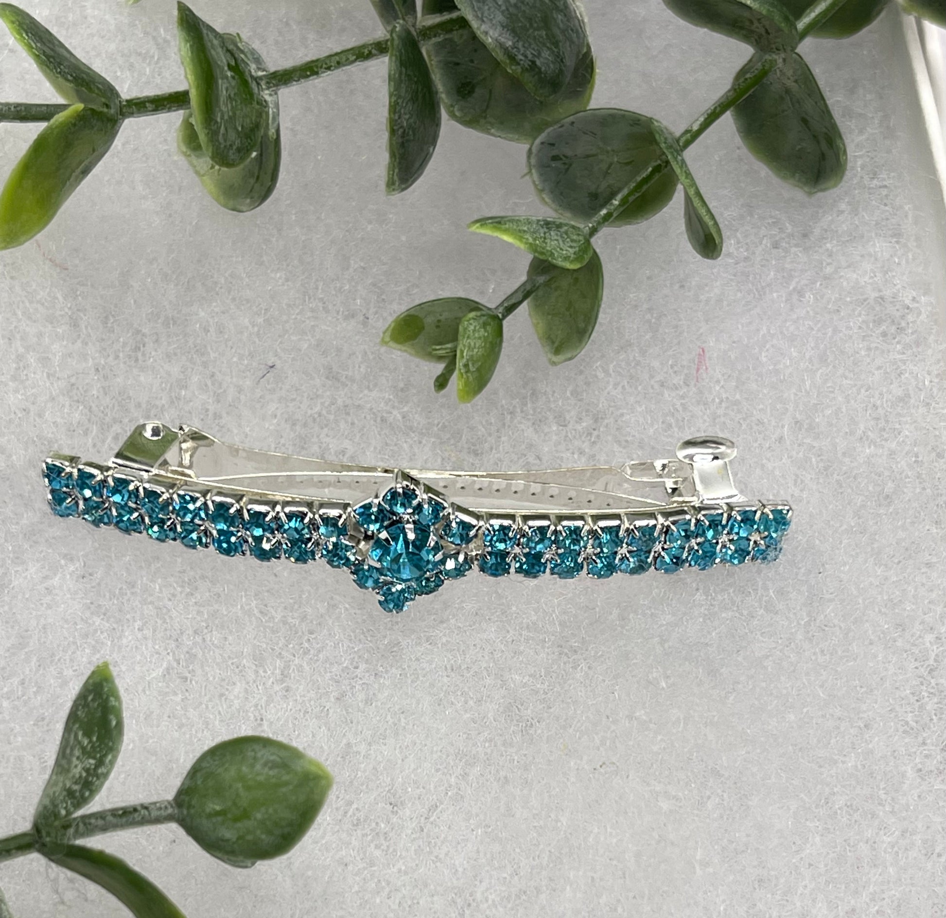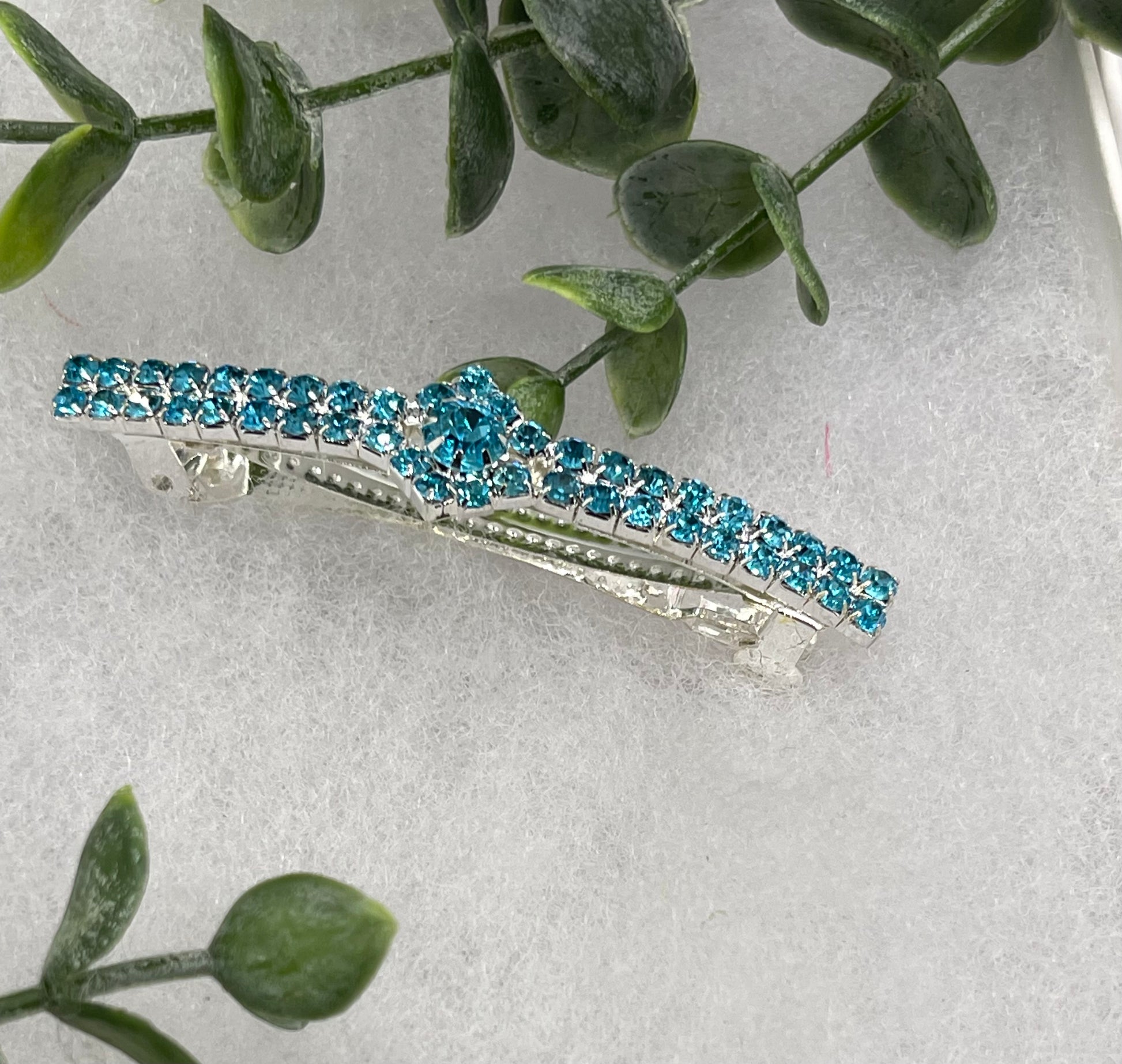 Teal blue Crystal Rhinestone barrette approximately 3.0 silver tone formal hair accessory gift wedding bridal Hair accessory