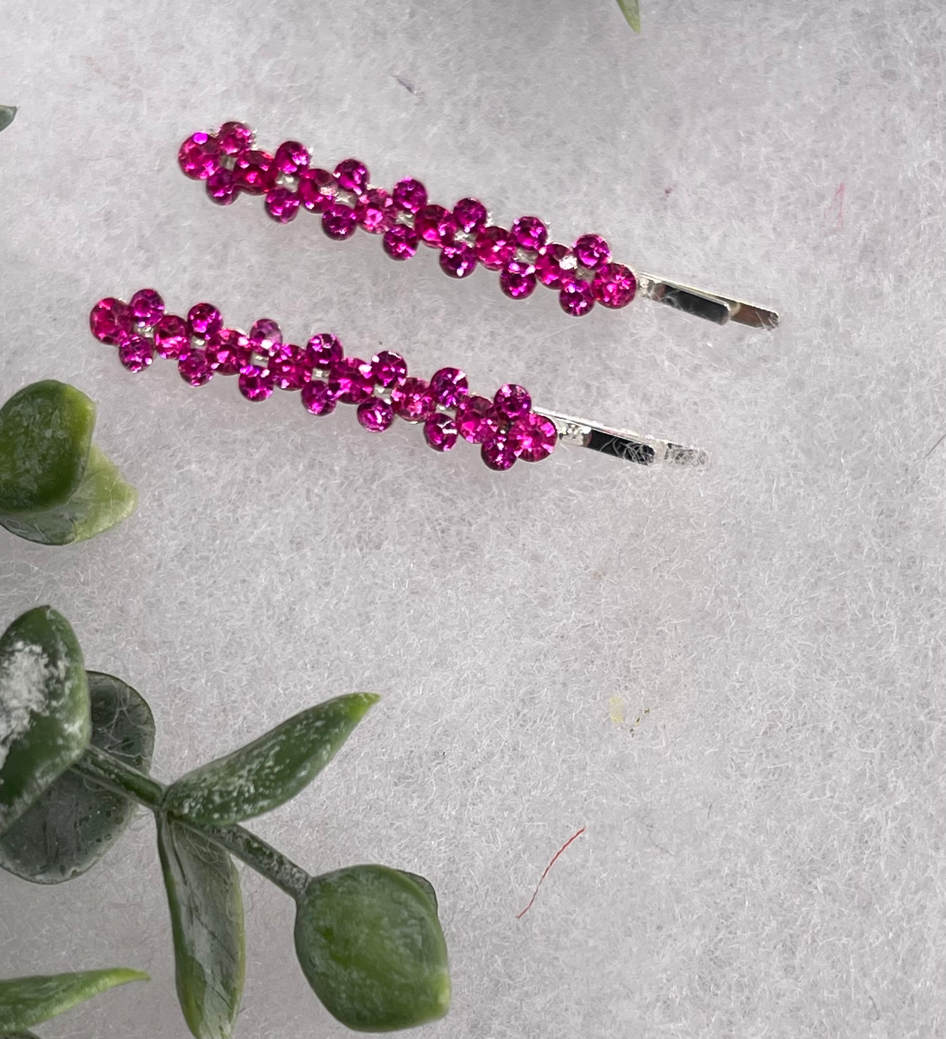 Pink Crystal Rhinestone Bobby pin hair pins set approximately 2.0” silver tone formal hair accessory gift wedding bridal Hair accessory
