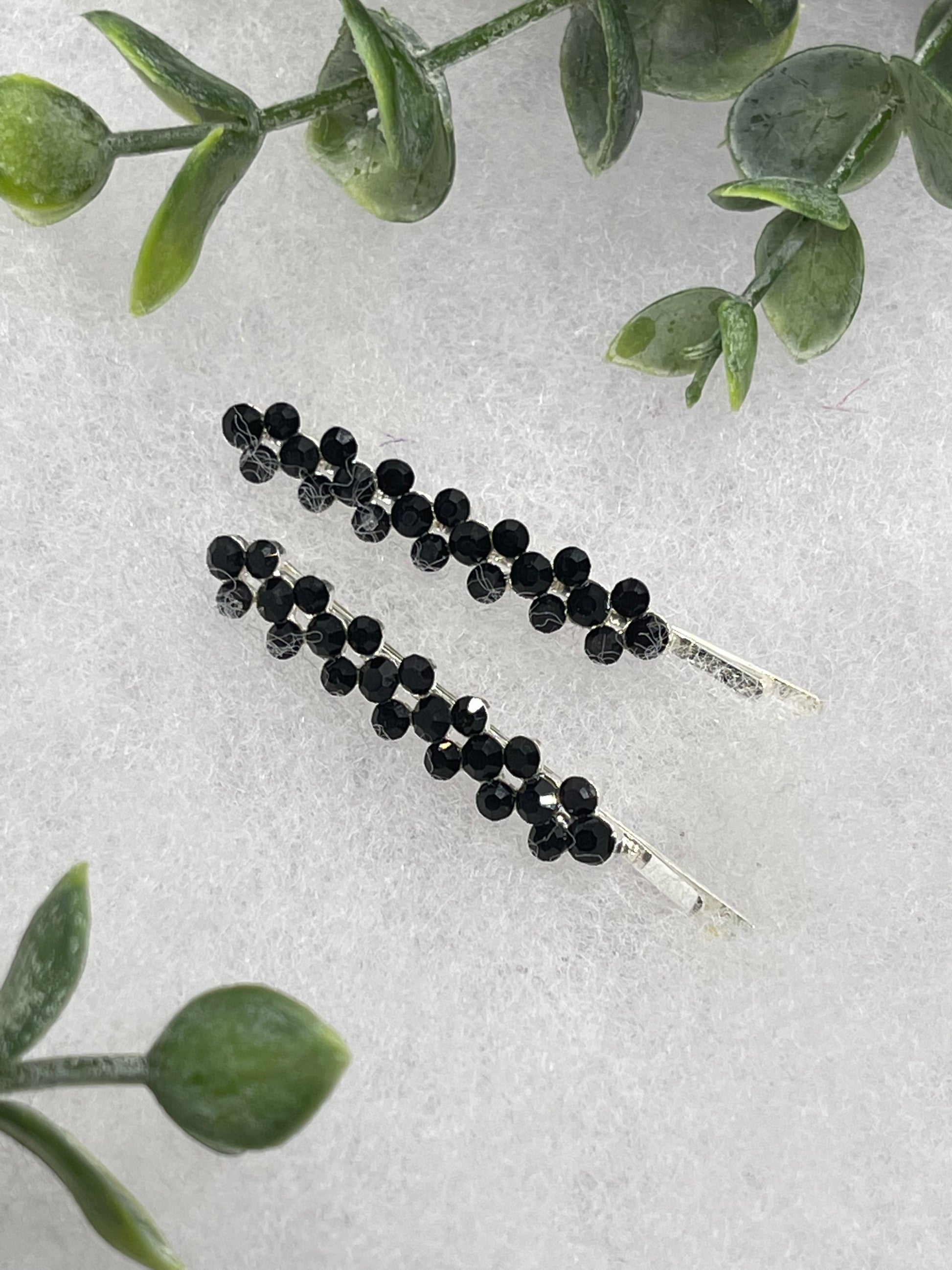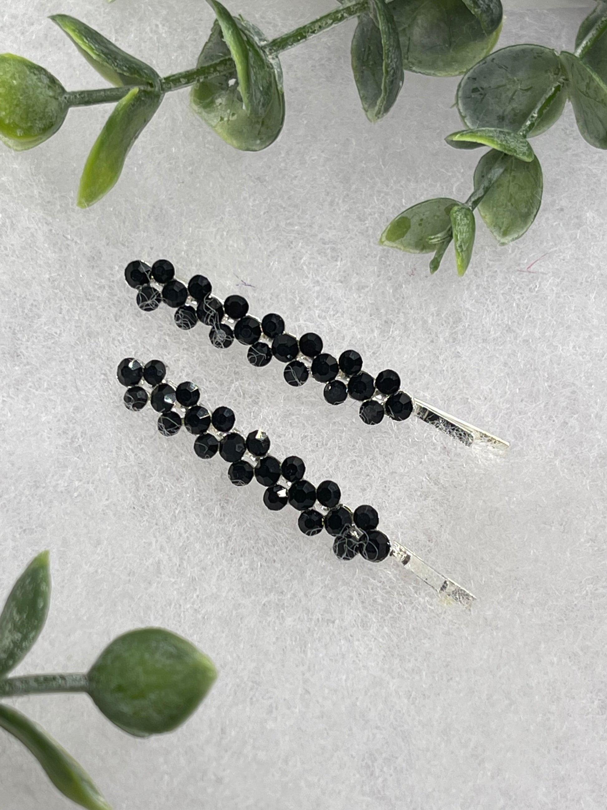 Black Crystal Rhinestone Bobby pin hair pins set approximately 2.0” silver tone formal hair accessory gift wedding bridal Hair accessory
