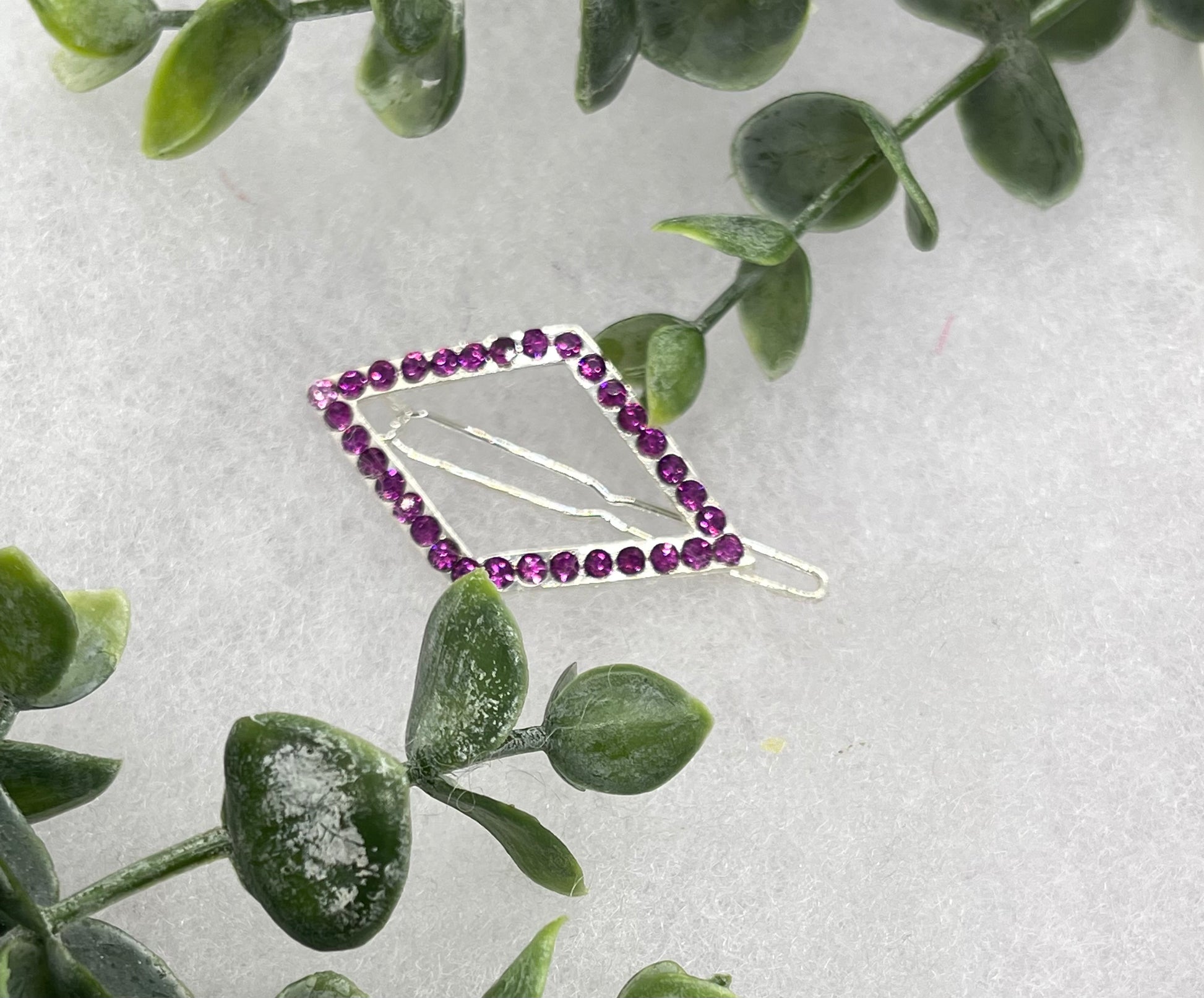 Purple Crystal Rhinestone Hair clip approximately 2.0” silver tone formal hair accessory gift wedding bridal Hair accessory
