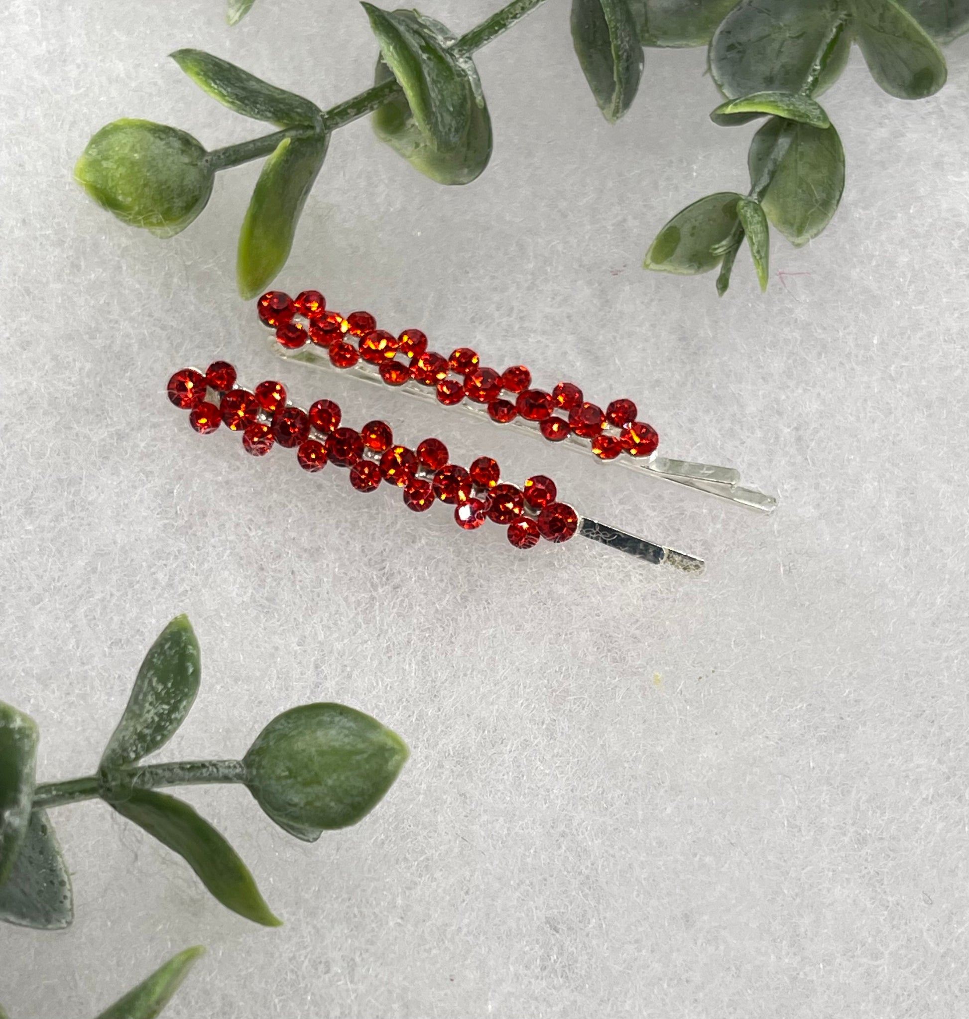 Red Crystal Rhinestone Bobby pin hair pins set approximately 2.5” silver tone formal hair accessory gift wedding bridal Hair accessory