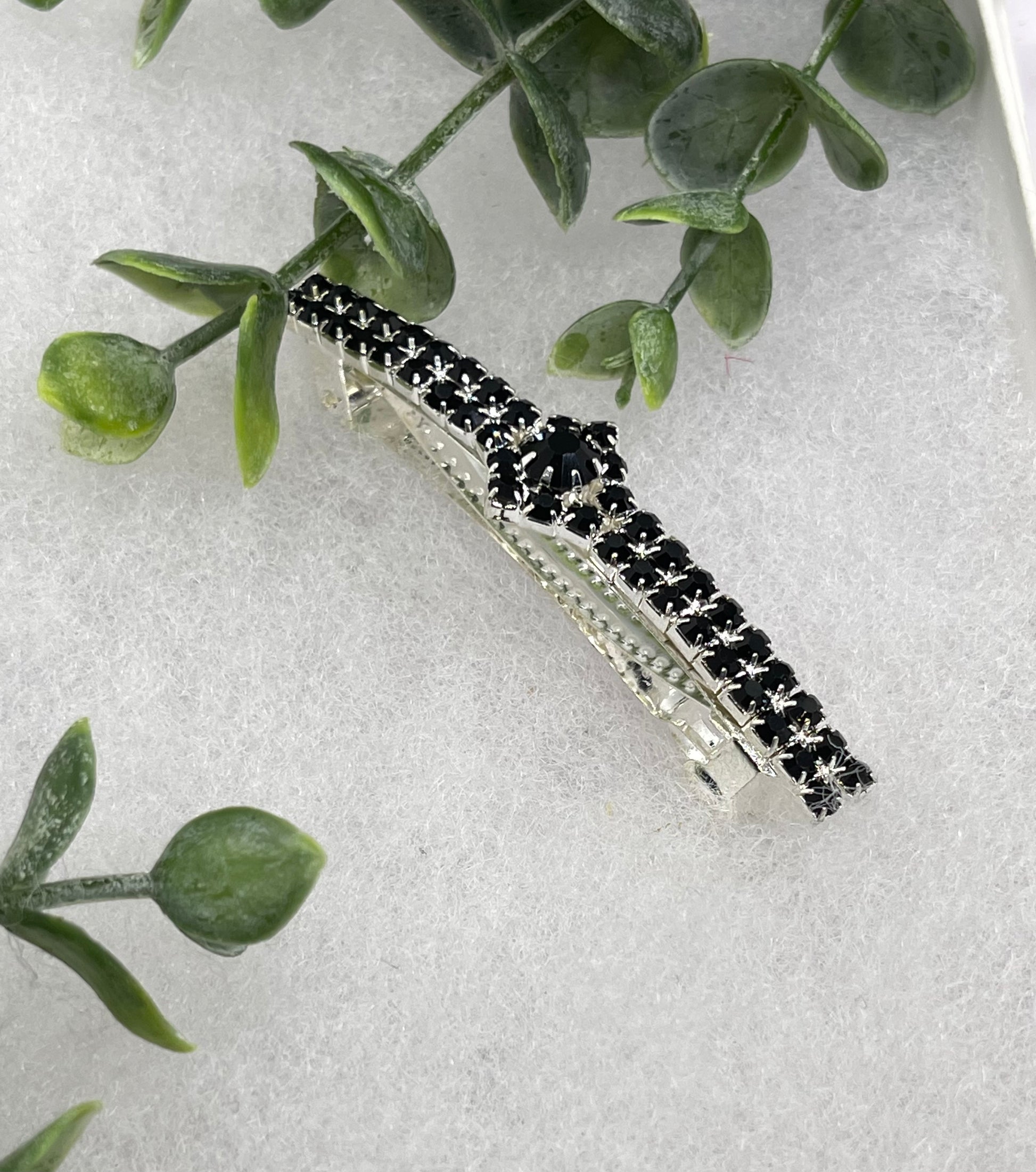 Black Crystal Rhinestone barrette approximately 3.0” silver tone formal hair accessory gift wedding bridal Hair accessory