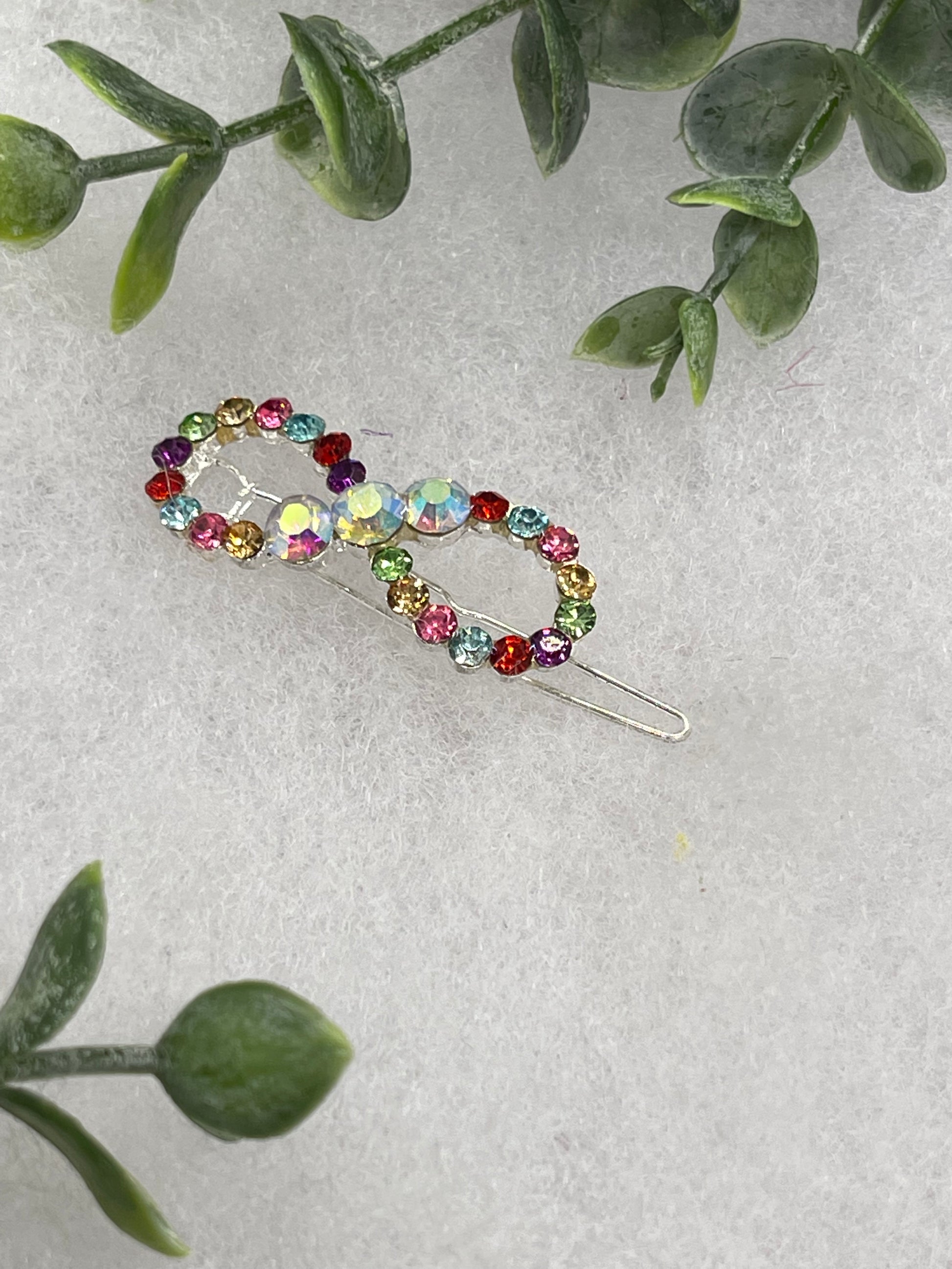 Rainbow Crystal Rhinestone Barrette approximately 2.0” silver tone formal hair accessory gift wedding bridal Hair accessory