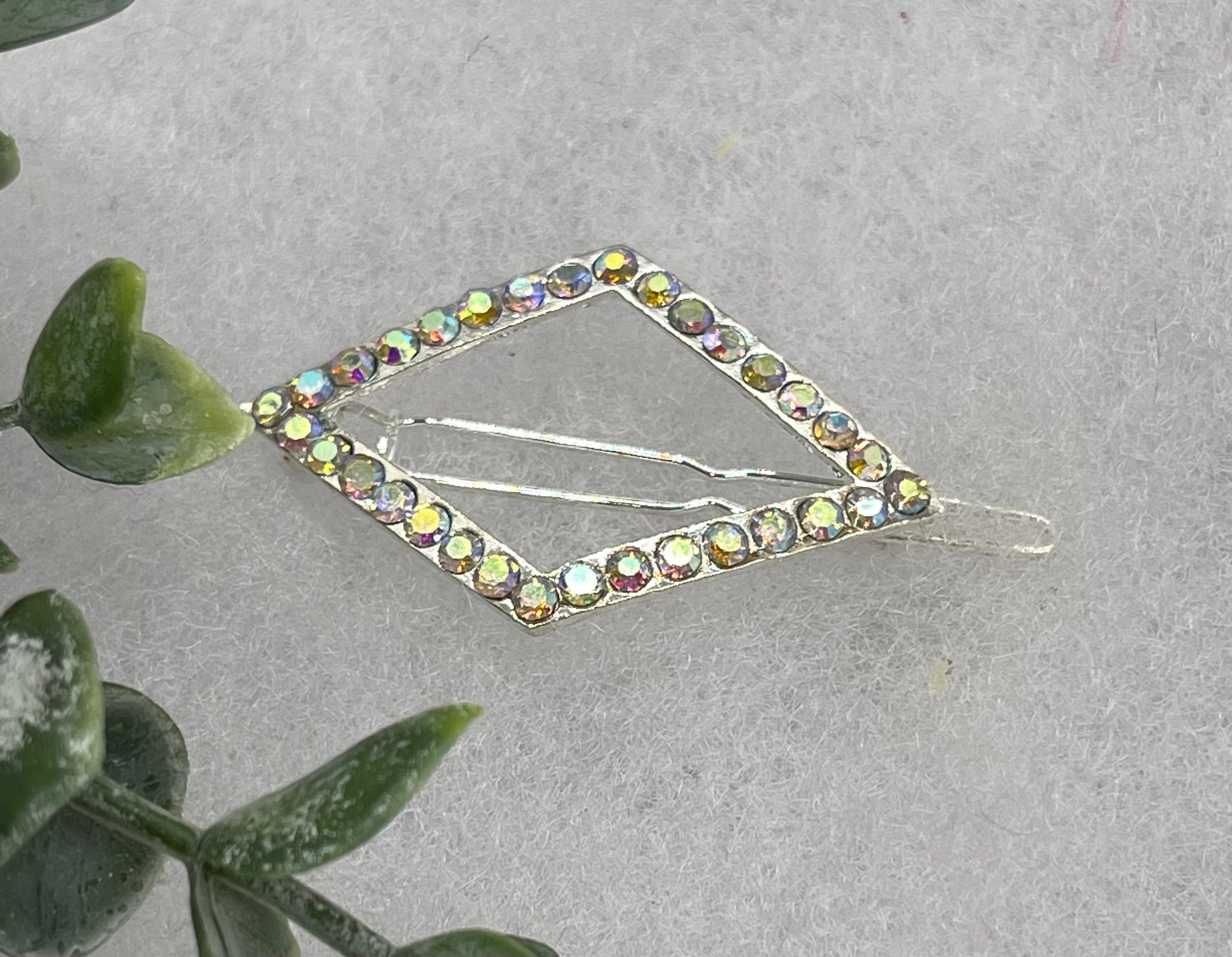 iridescent Crystal Rhinestone Hair clip approximately 2.0” silver tone formal hair accessory gift wedding bridal Hair accessory