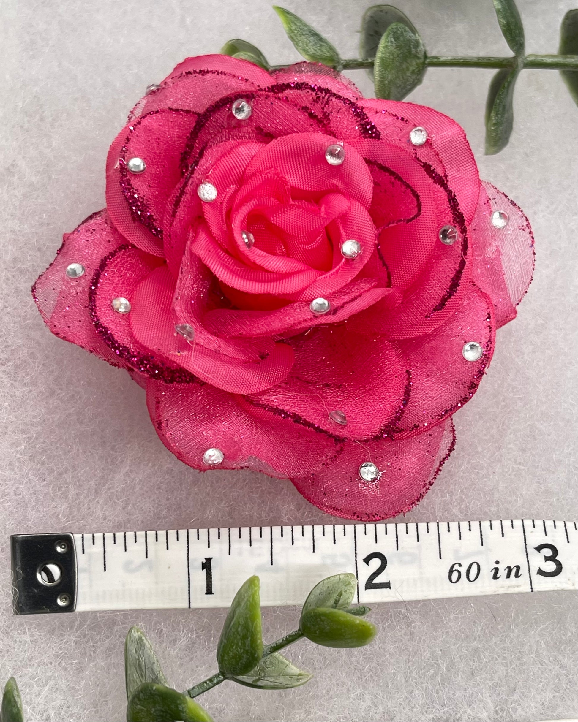Pink Rose flower crystal rhinestone embellished alligator clip approximately 3.0” formal hair accessory wedding bridal