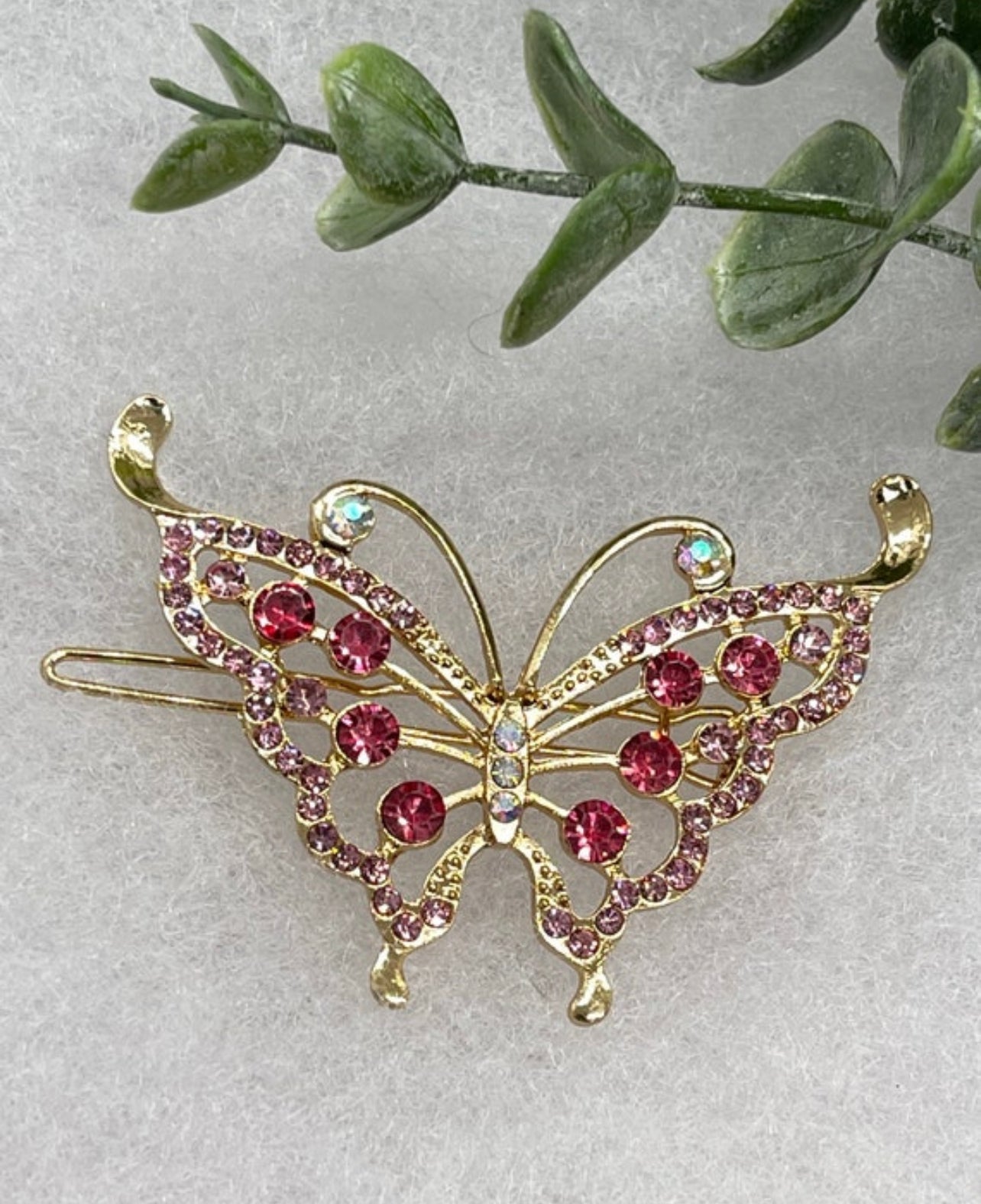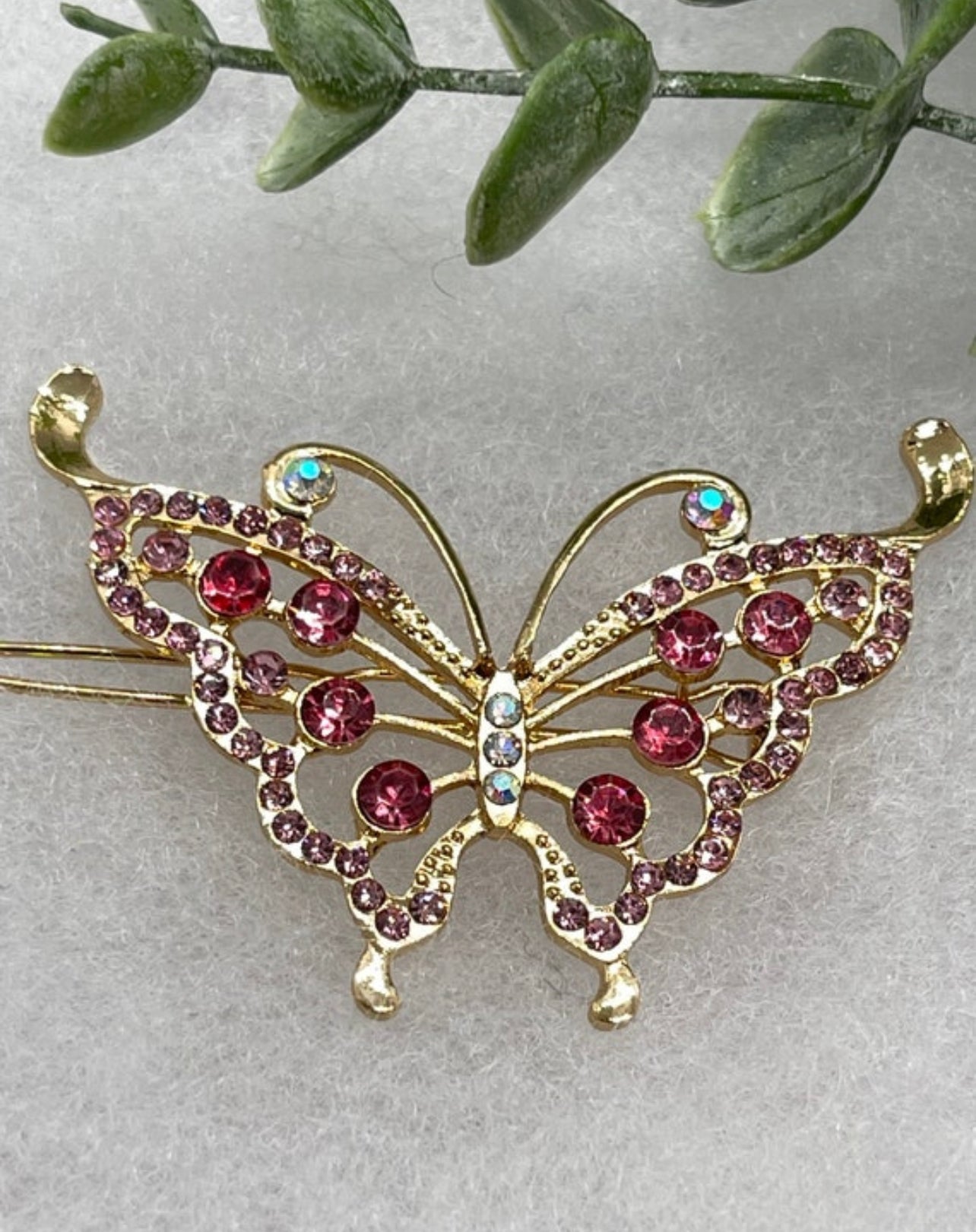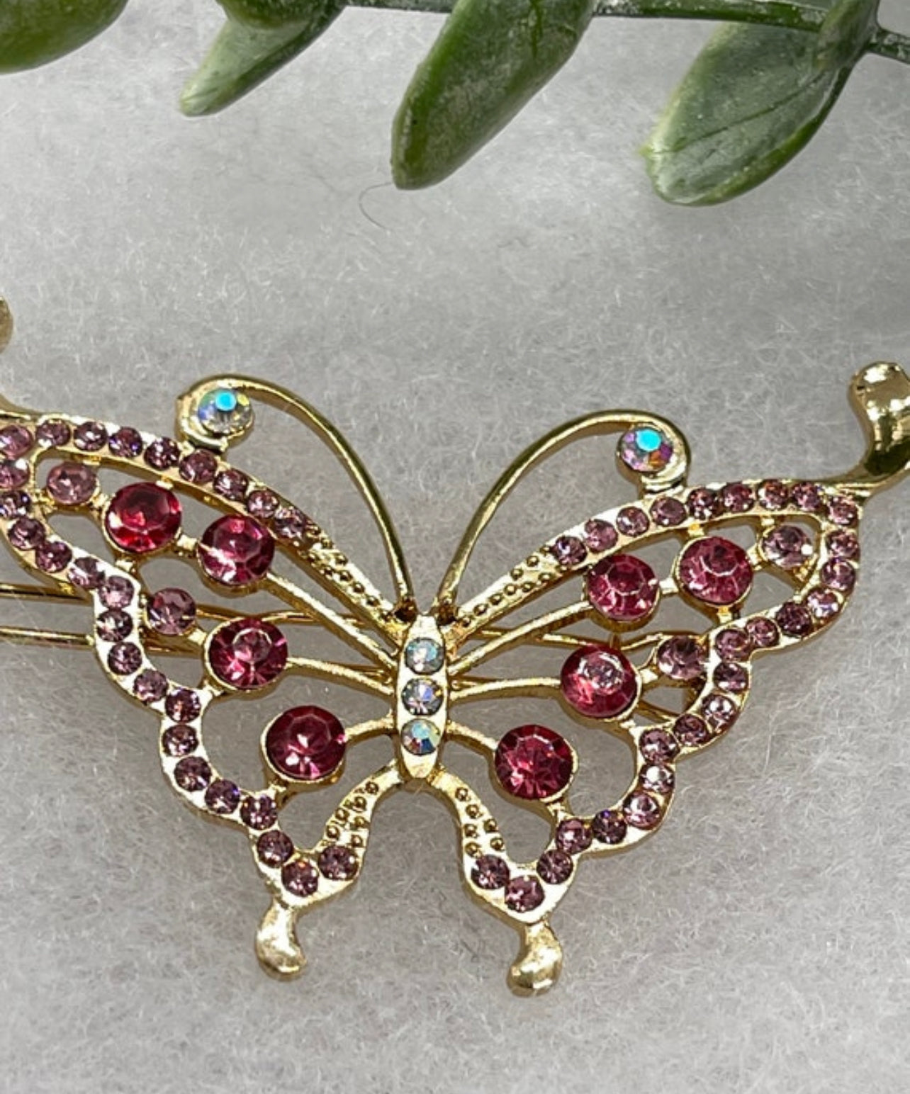 Pink gold butterfly Crystal Rhinestone Barrette approximately 3.5”Metal gold tone formal hair accessory
