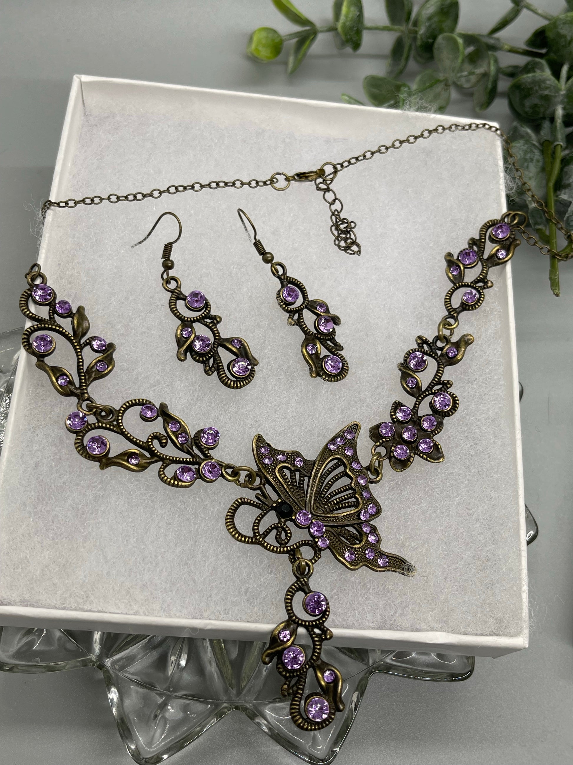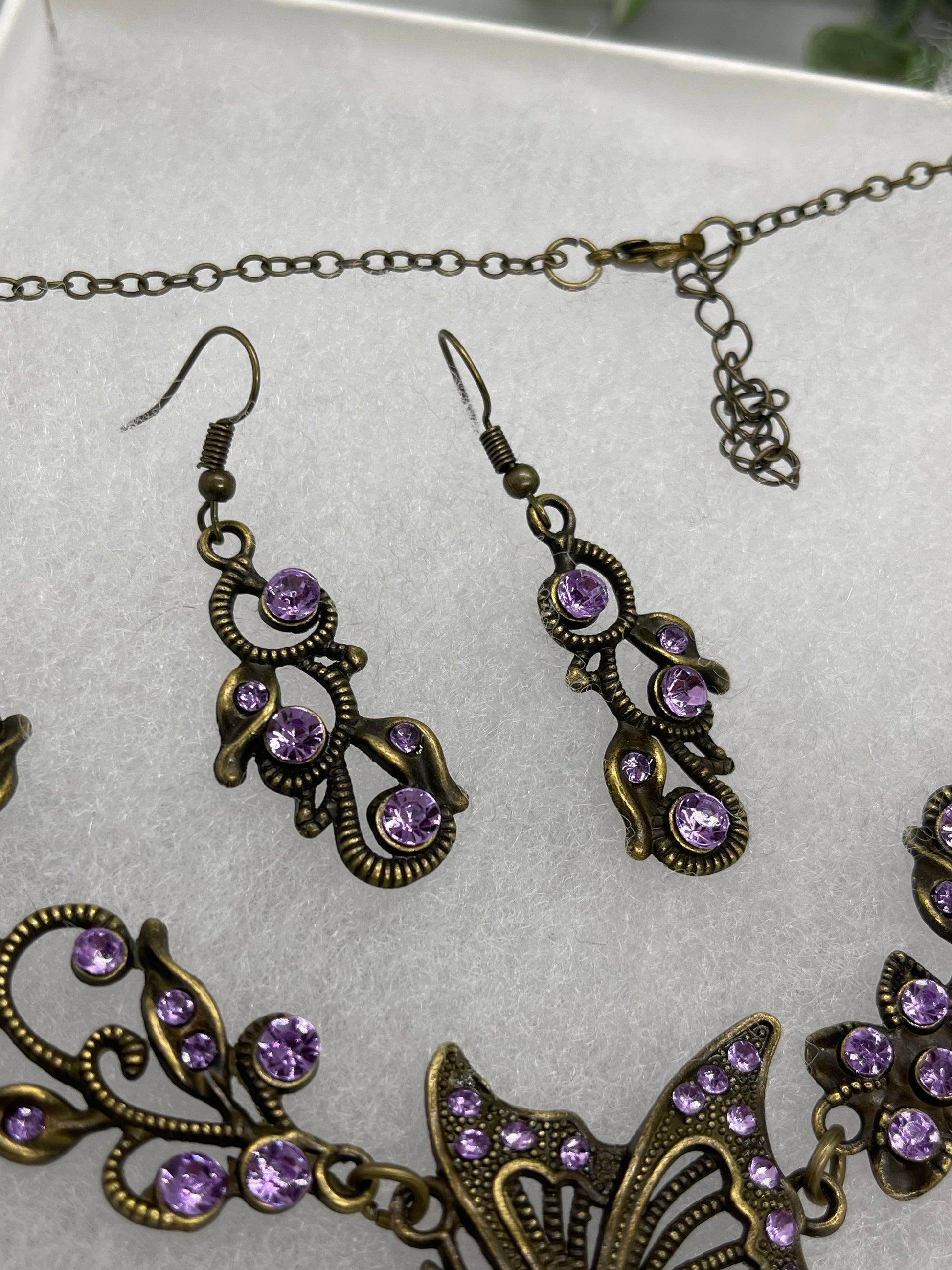 Lavender purple rhinestone crystal necklace earrings set Rhinestone Jewelry Sets earring necklace wedding engagement formal party Prom 17.5” length