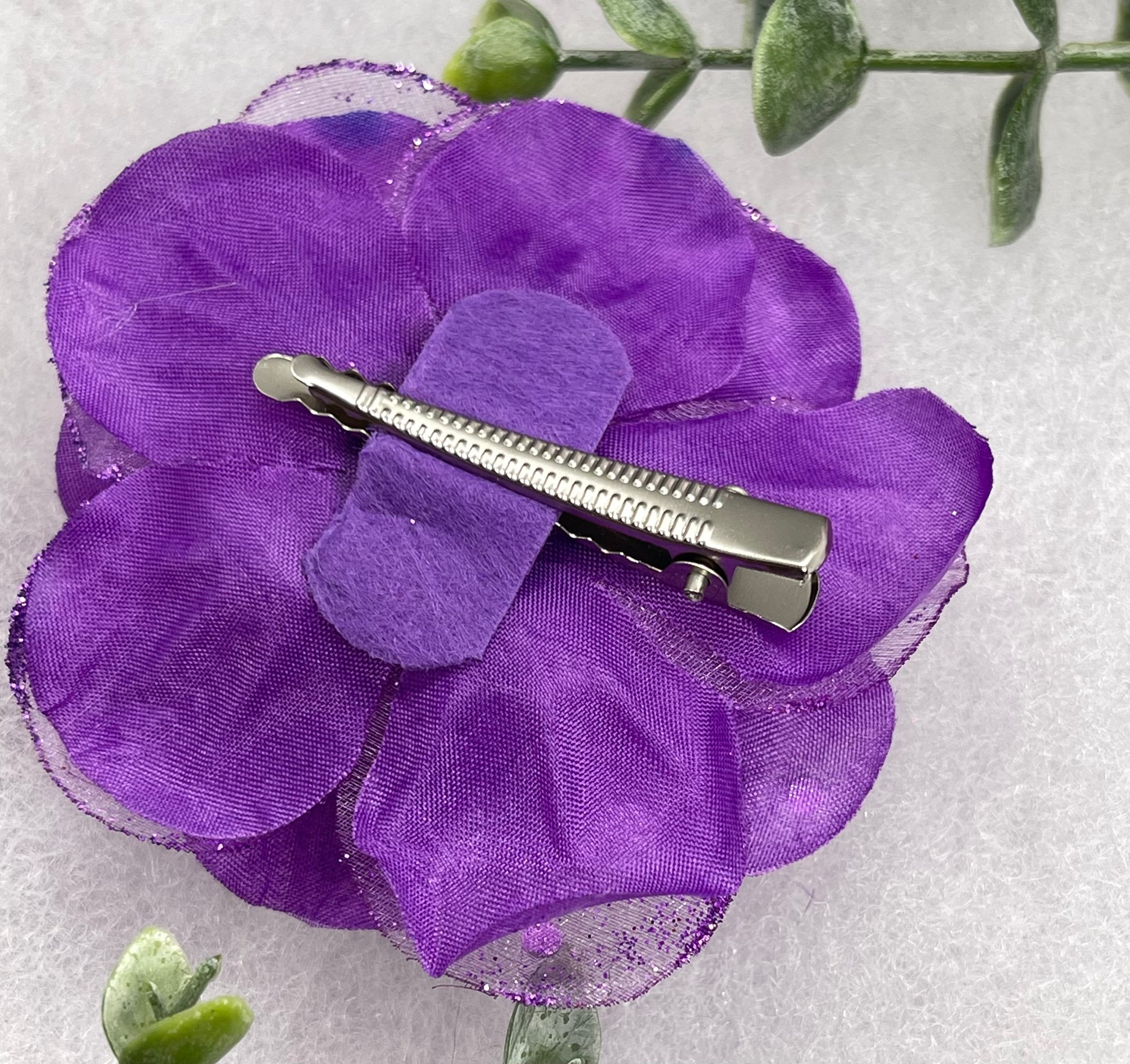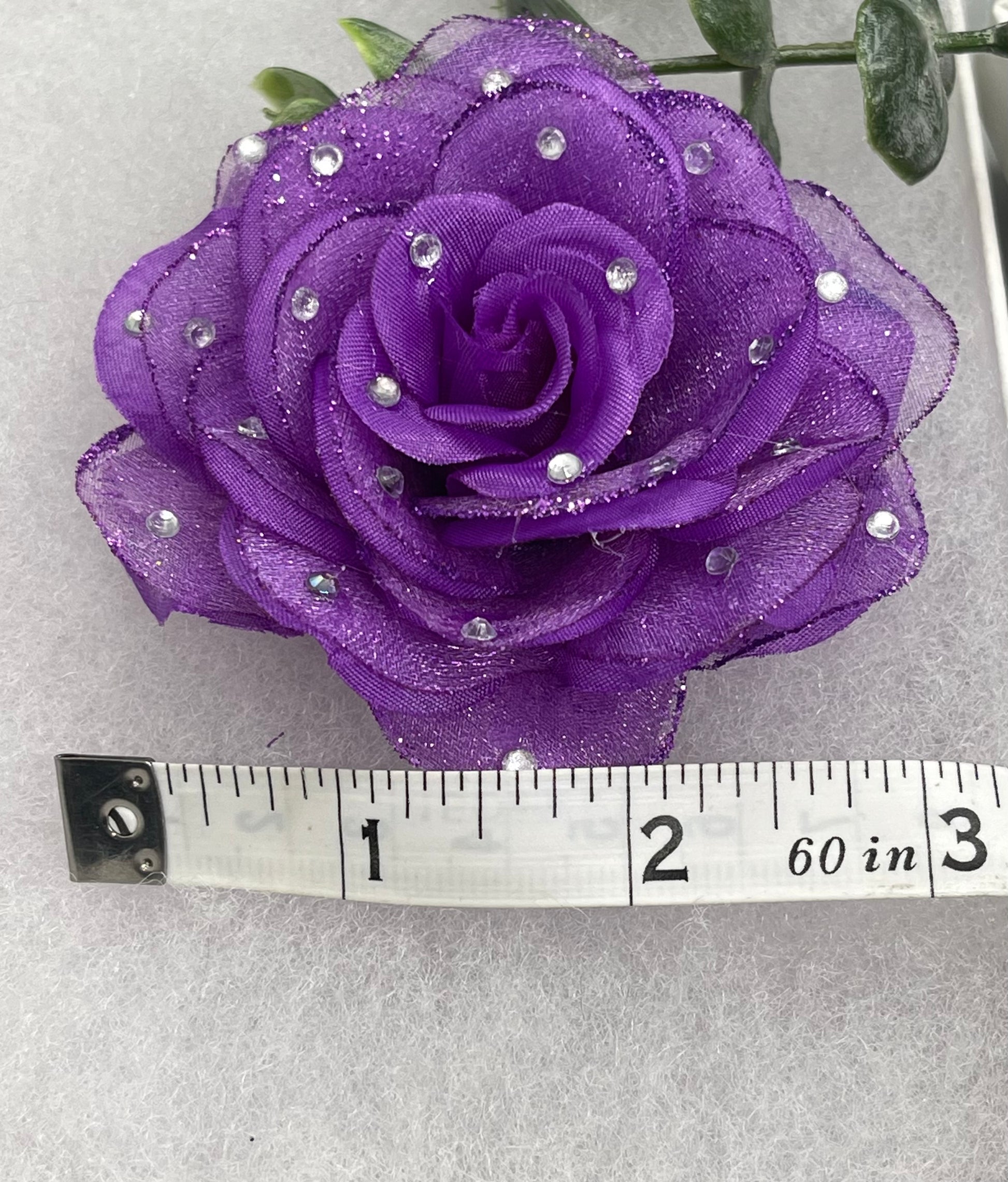 Purple Rose flower crystal rhinestone embellished alligator clip approximately 3.0” formal hair accessory wedding bridal engagement princess bridesmaid