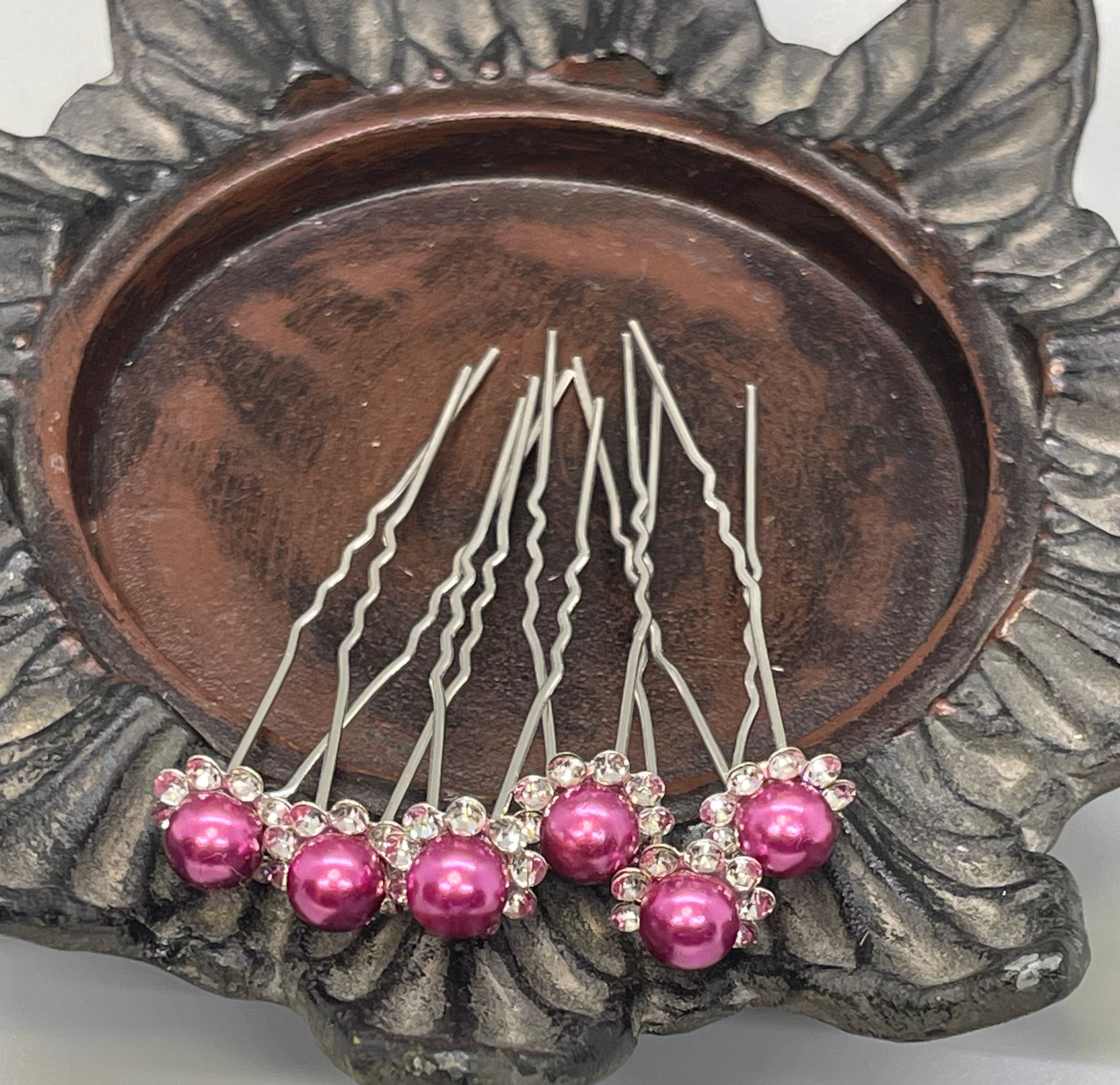 Purple Pearl crystal hair pins 6pc set hair accessory accessories Jewelry hair accessory wedding bridesmaids shower accessories