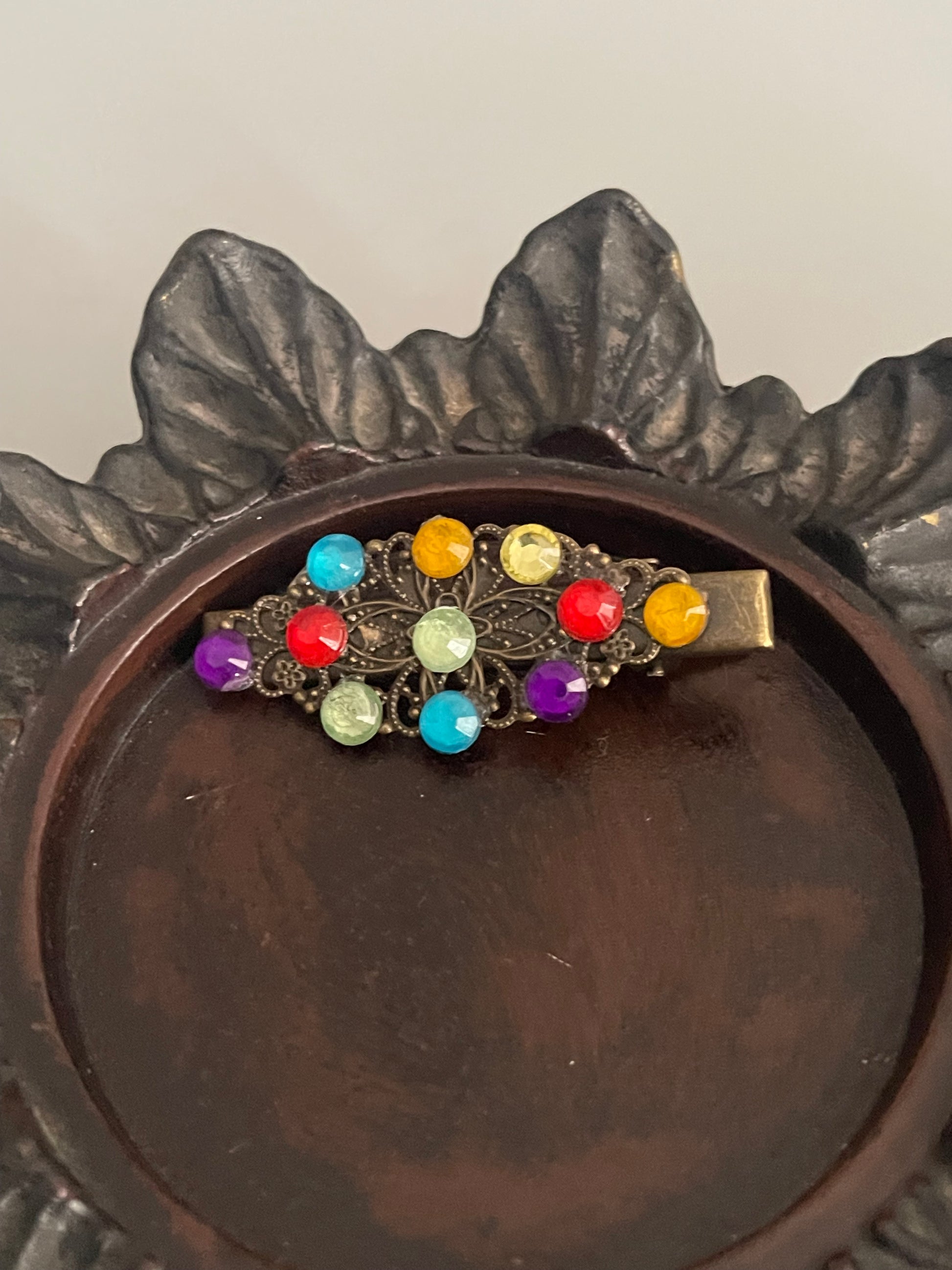 Rainbow faux crystal alligator clip 2.5” wedding birthday gift bridal shower prom hair accessories