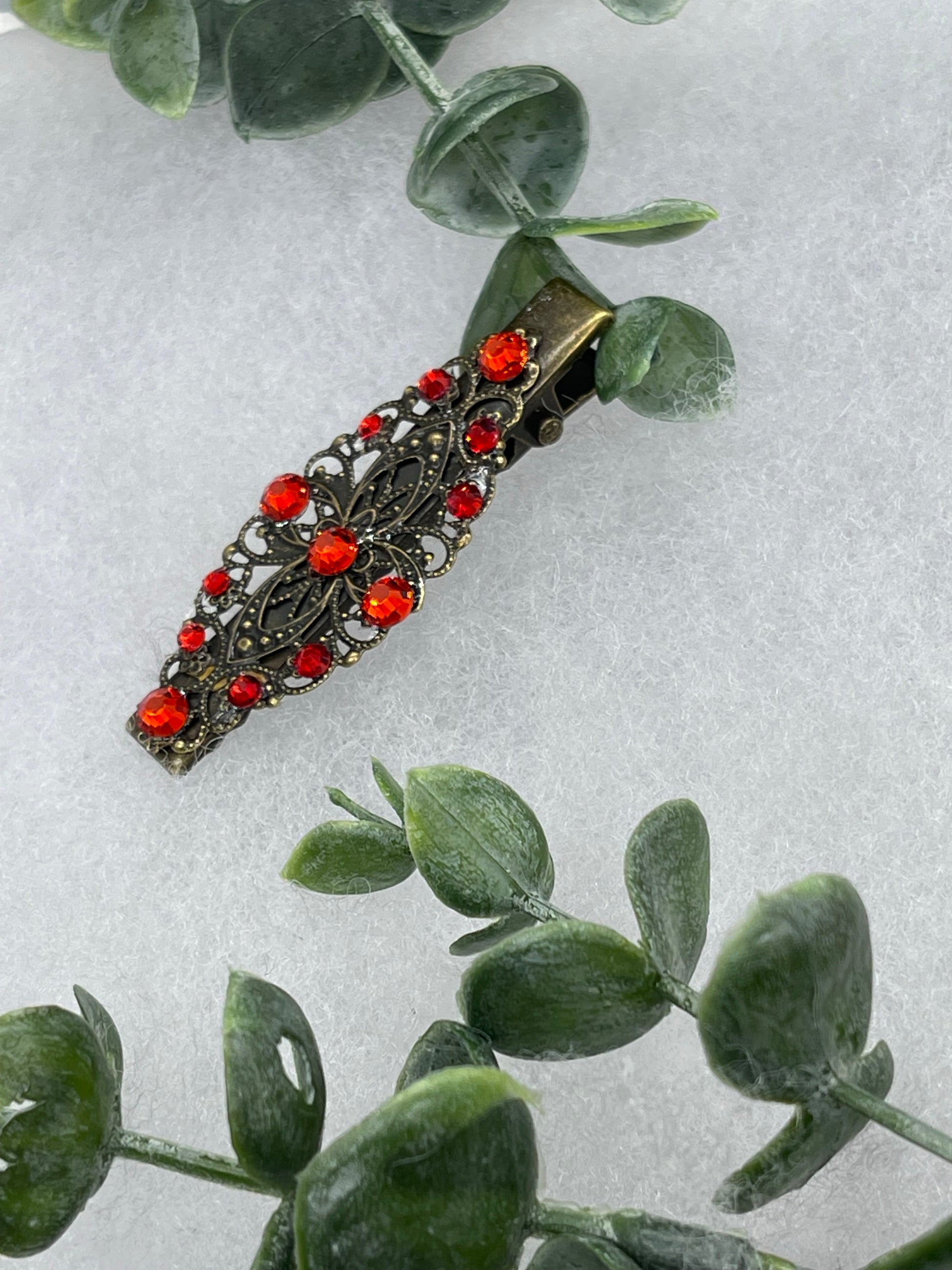 Red crystal vintage antique style leaf hair alligator clip on a 2.5”Handmade hair accessory bridal wedding Retro Bridal Party Prom Birthday gifts