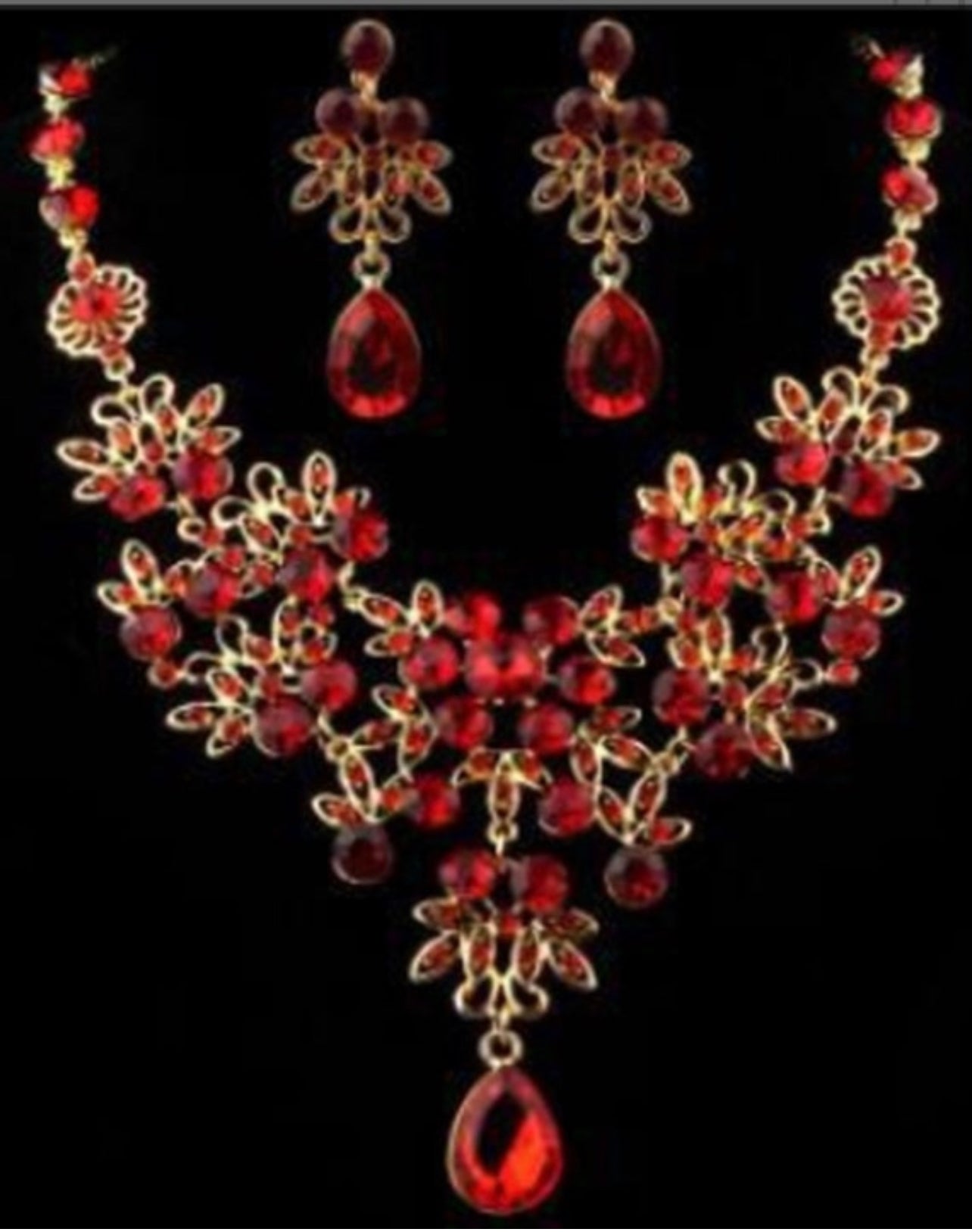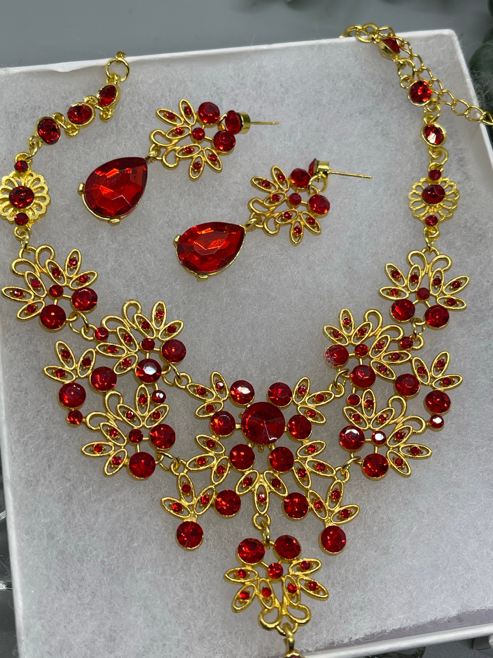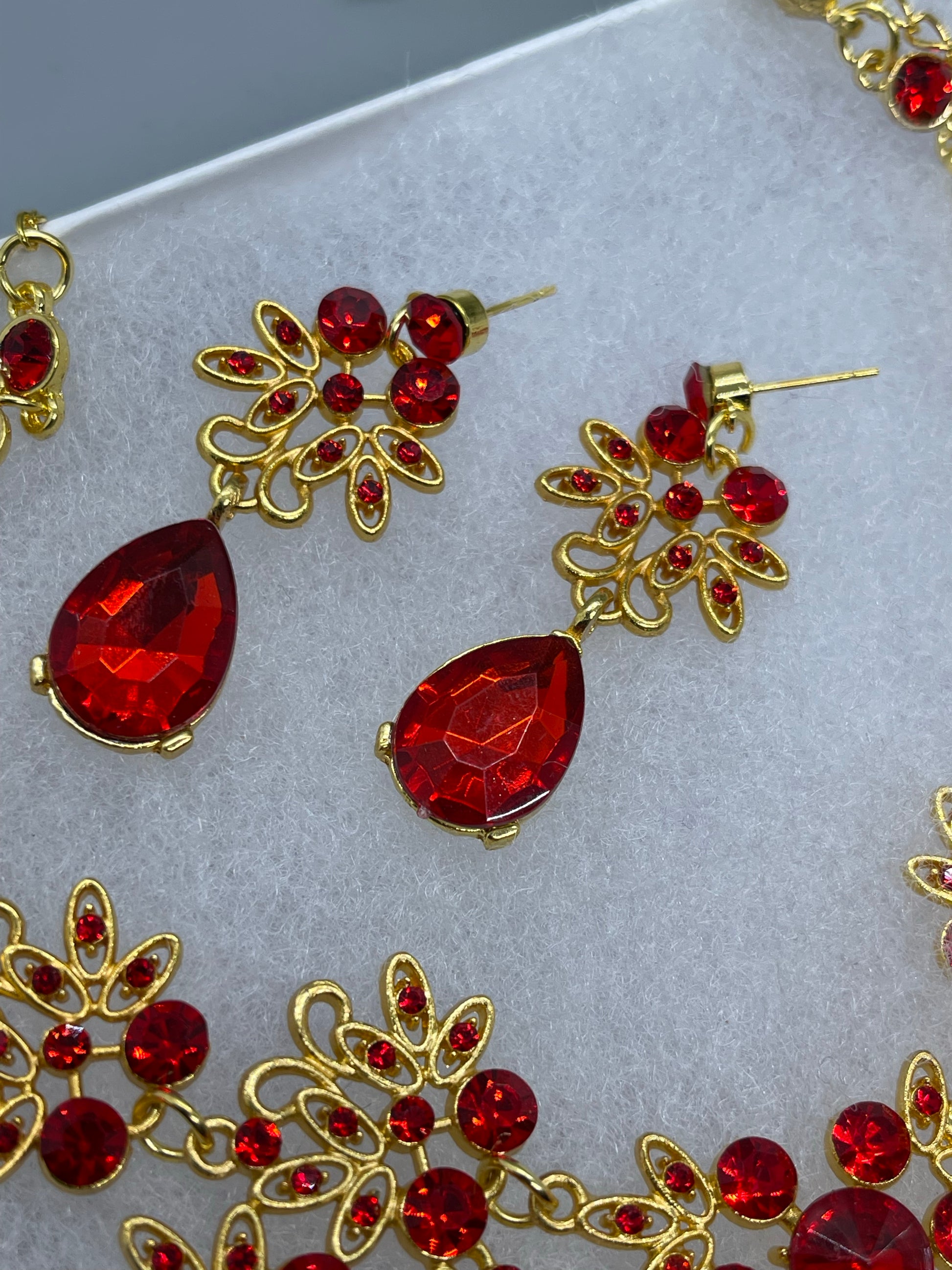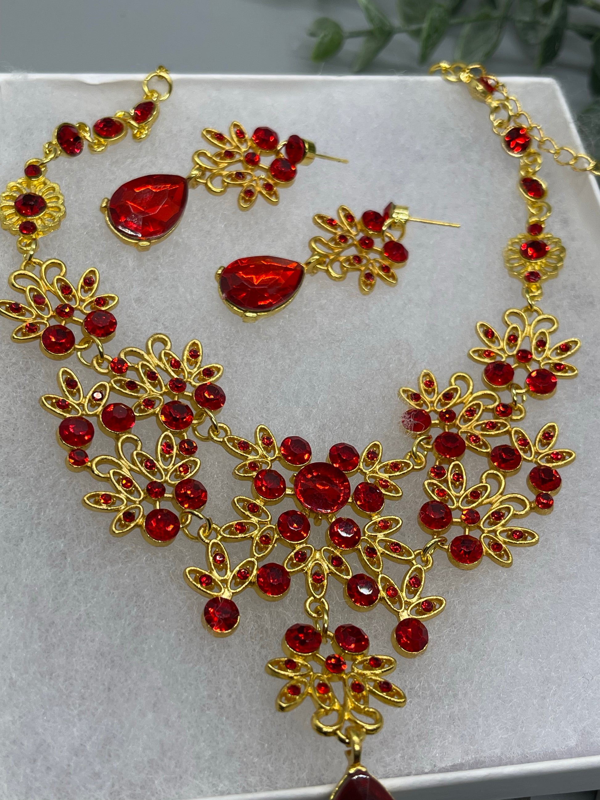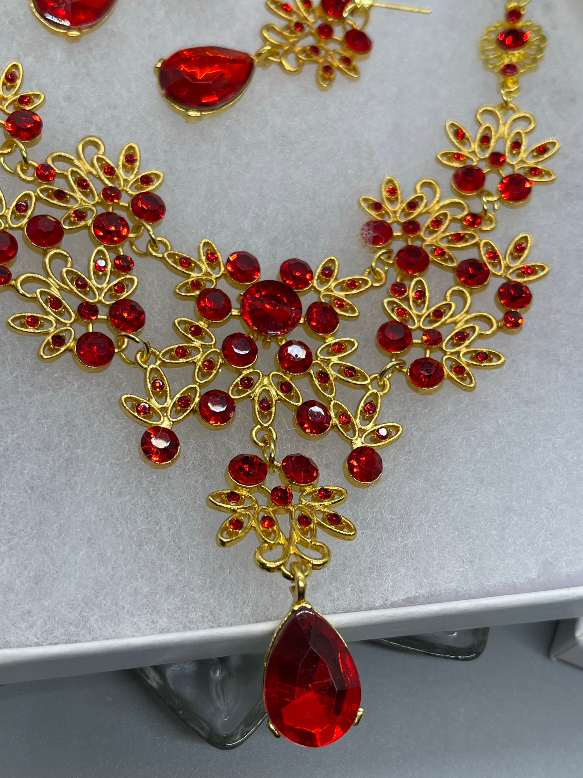 Red Gold rhinestone crystal necklace earrings set Rhinestone Jewelry Sets earring necklace wedding engagement formal party Prom sweet 16 sets