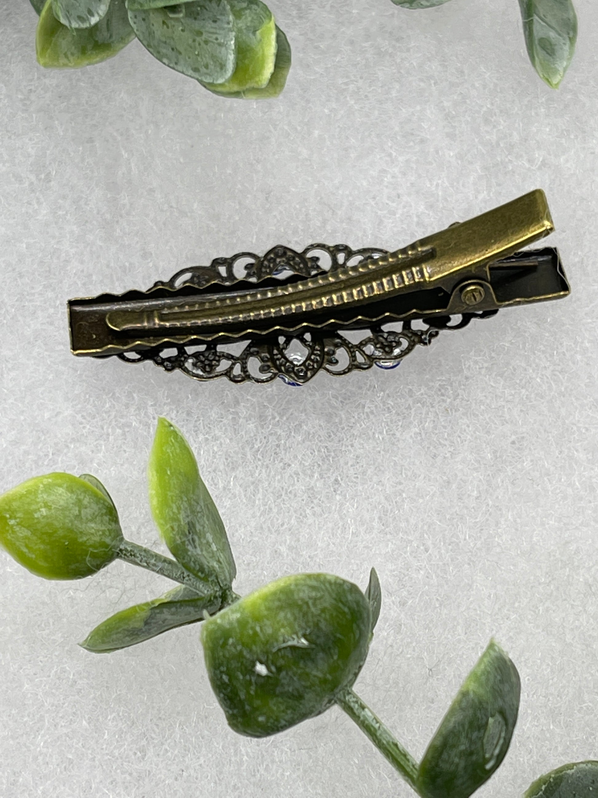 Royal blue crystal vintage antique style leaf hair alligator clip on a 2.5”