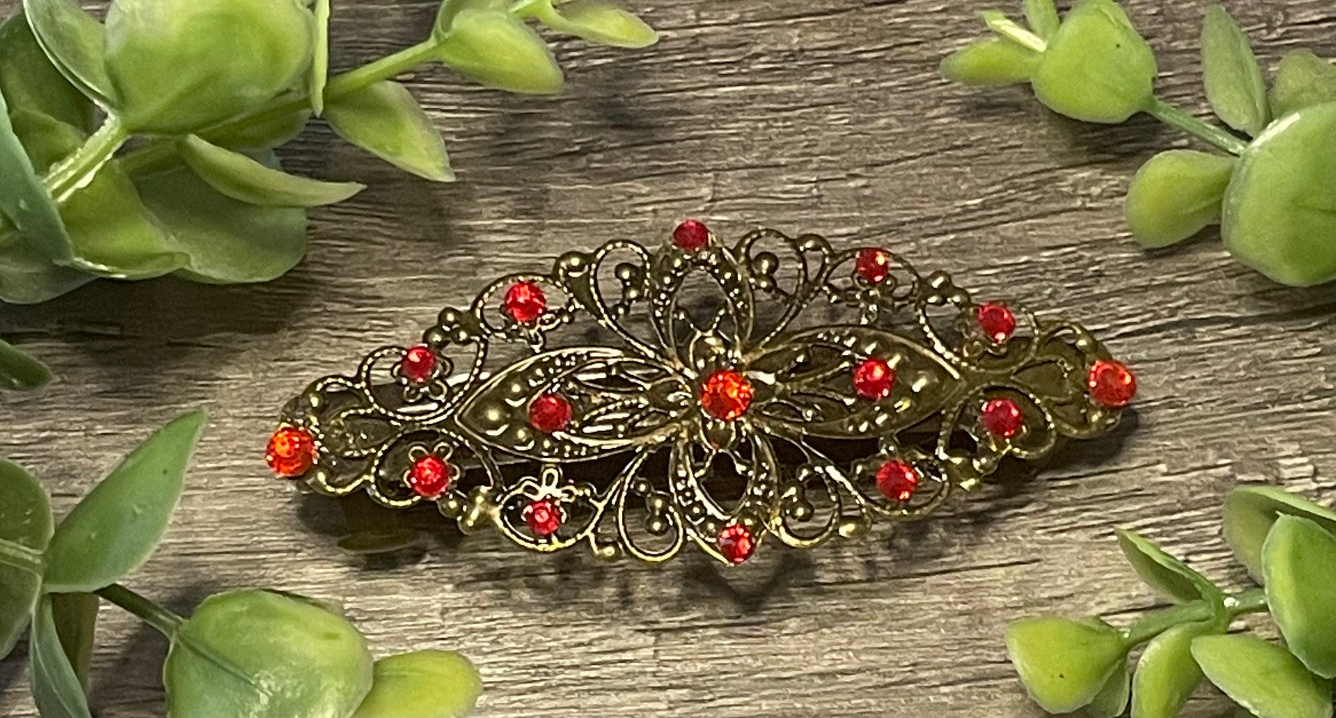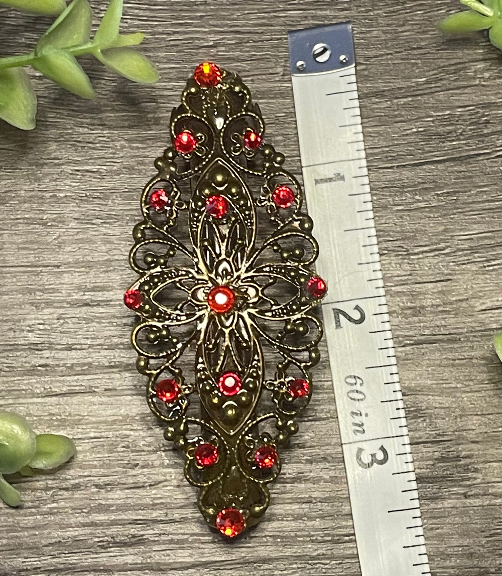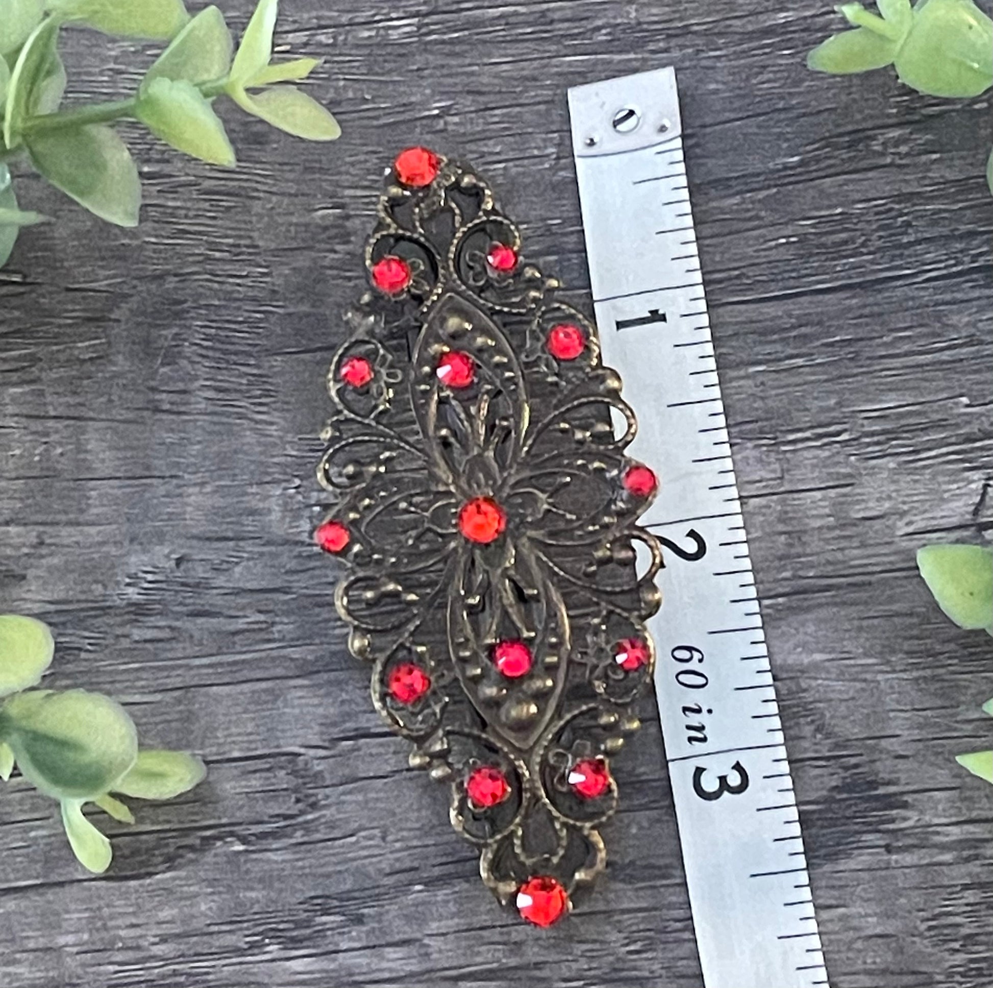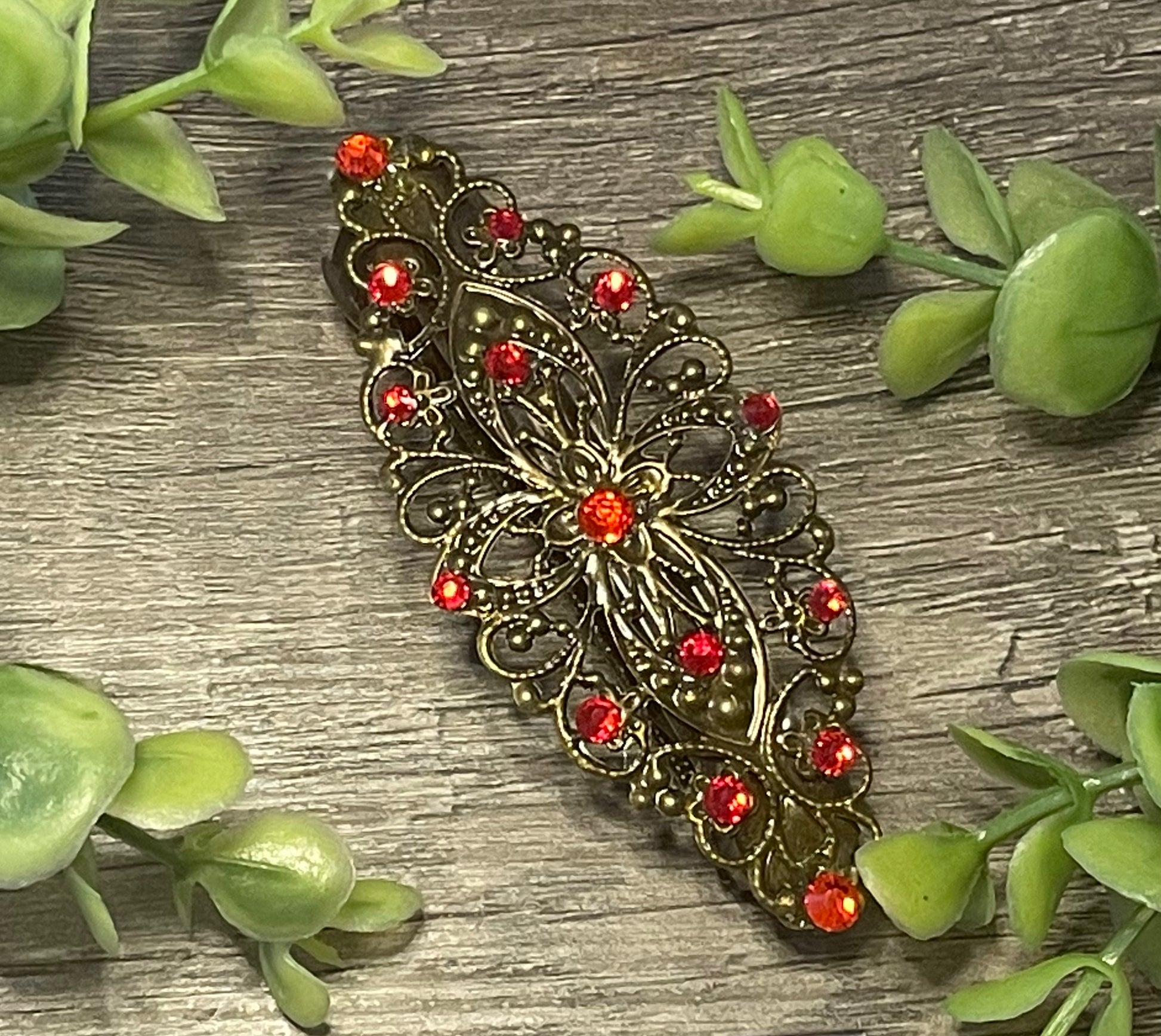Ruby Red Crystal antique style hair barrette clip approximately 3.5” long Handmade hair accessory bridal wedding