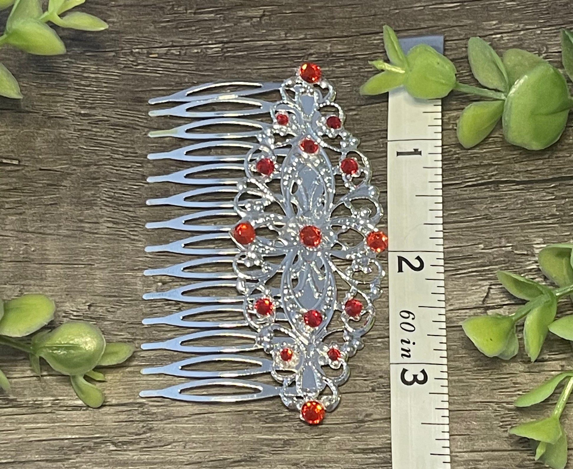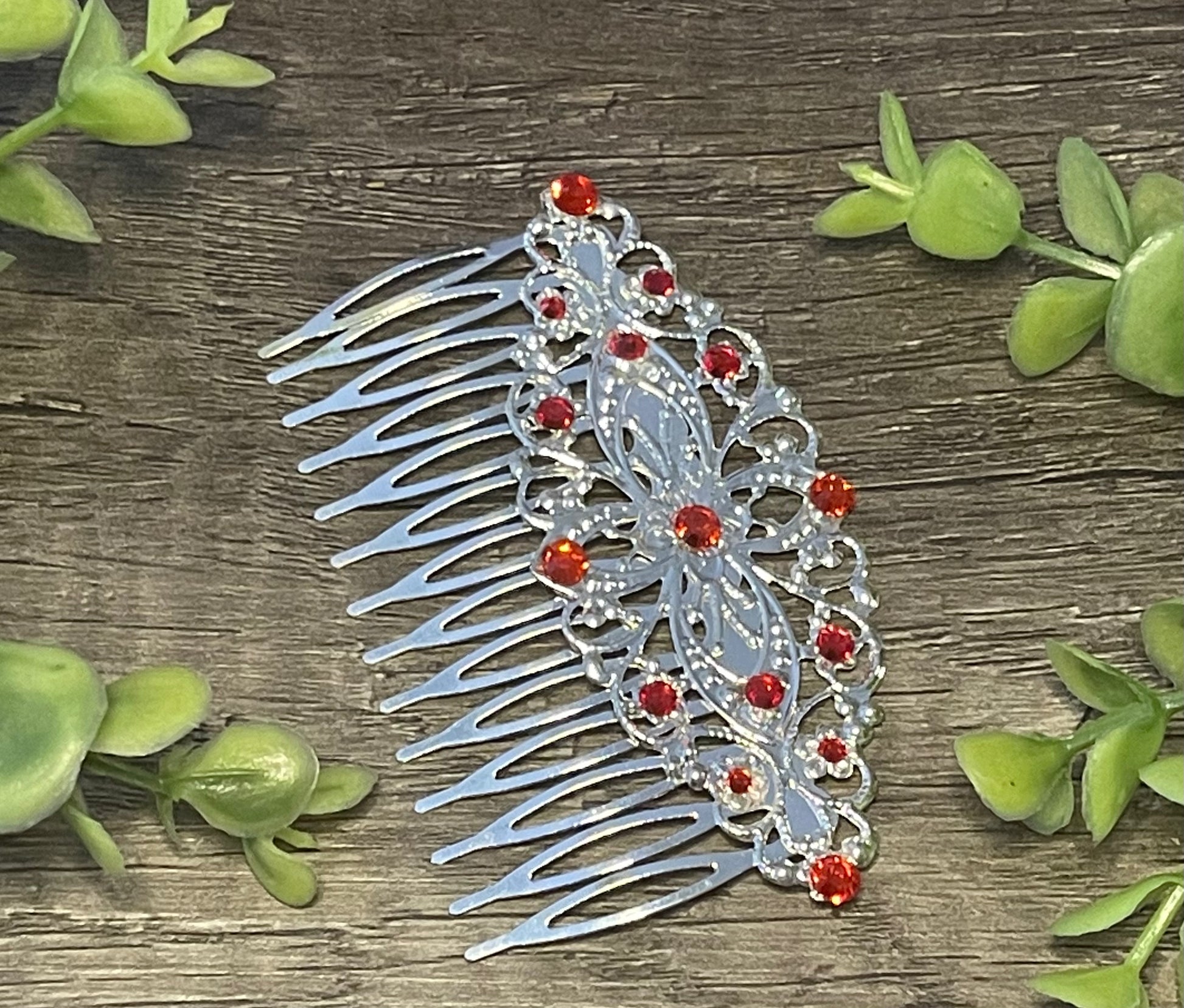 Ruby Red crystal rhinestone Comb on 3.5” silver Metal Hair Comb accessory Handmade Retro Bridal Prom birthday wedding bridal gift