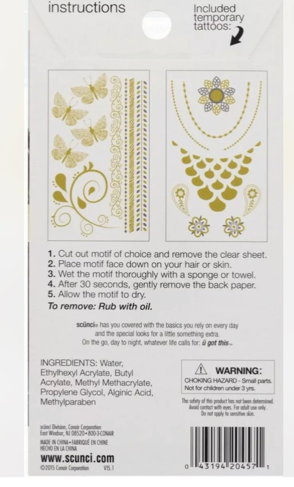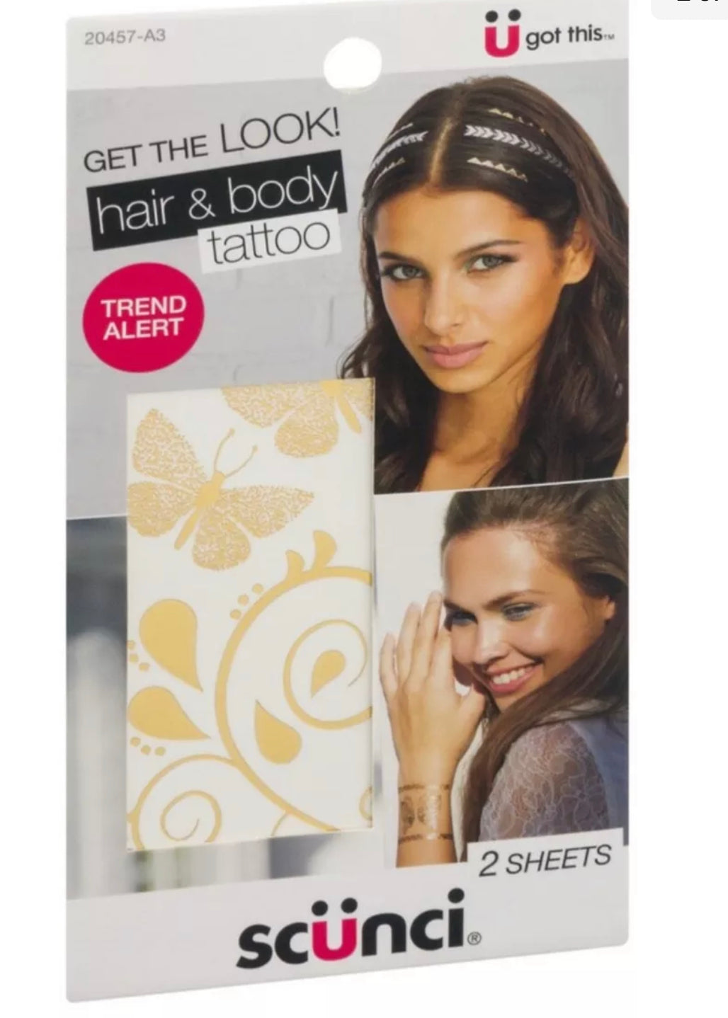 Scunci hair & body tattoo 2 sheet’s gold pack party favors gifts wedding accessories hair bridesmaid bridal shower birthday