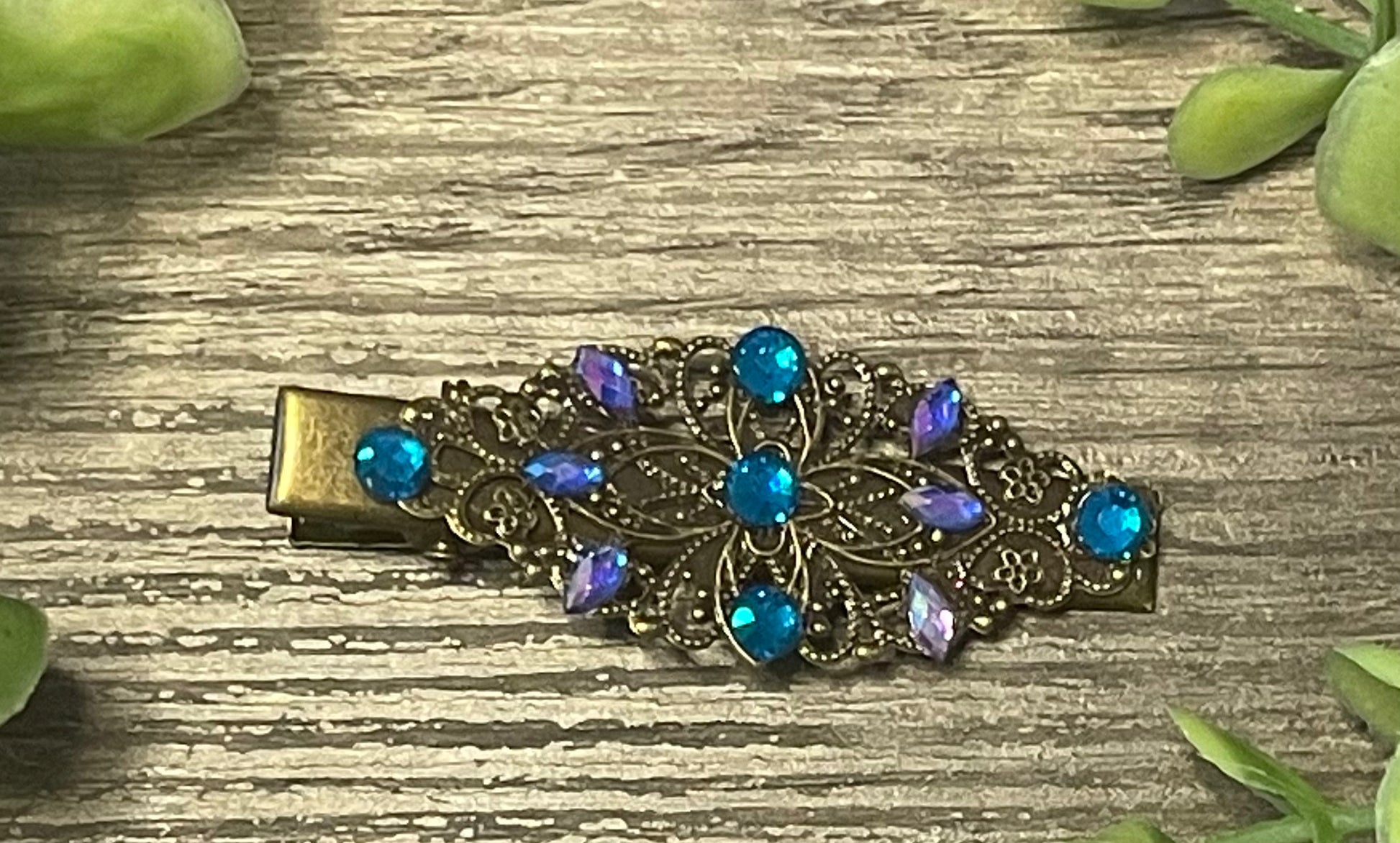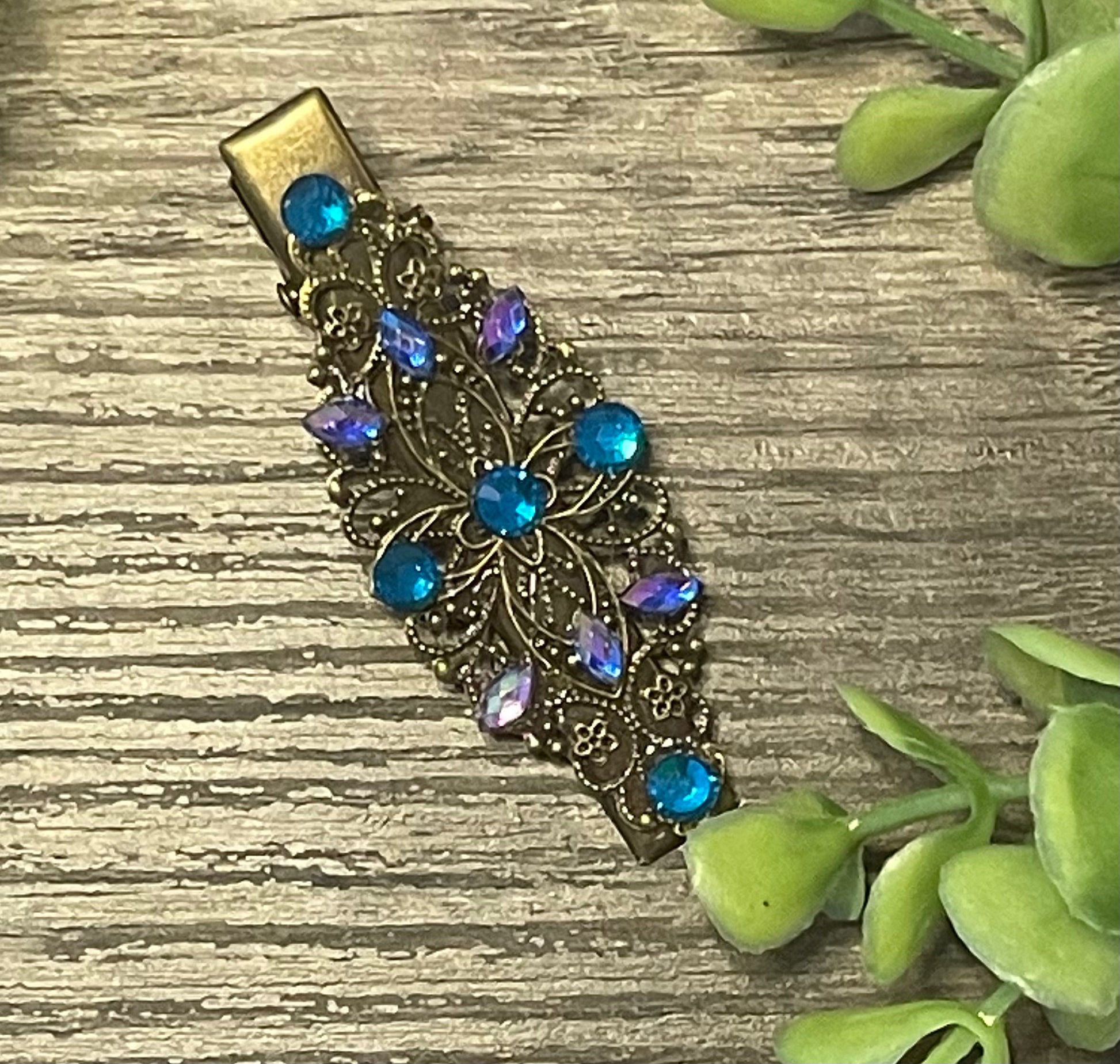 Teal blue crystal antique 2.5” alligator clip hair accessories bridesmaid wedding formal jewelry accessories