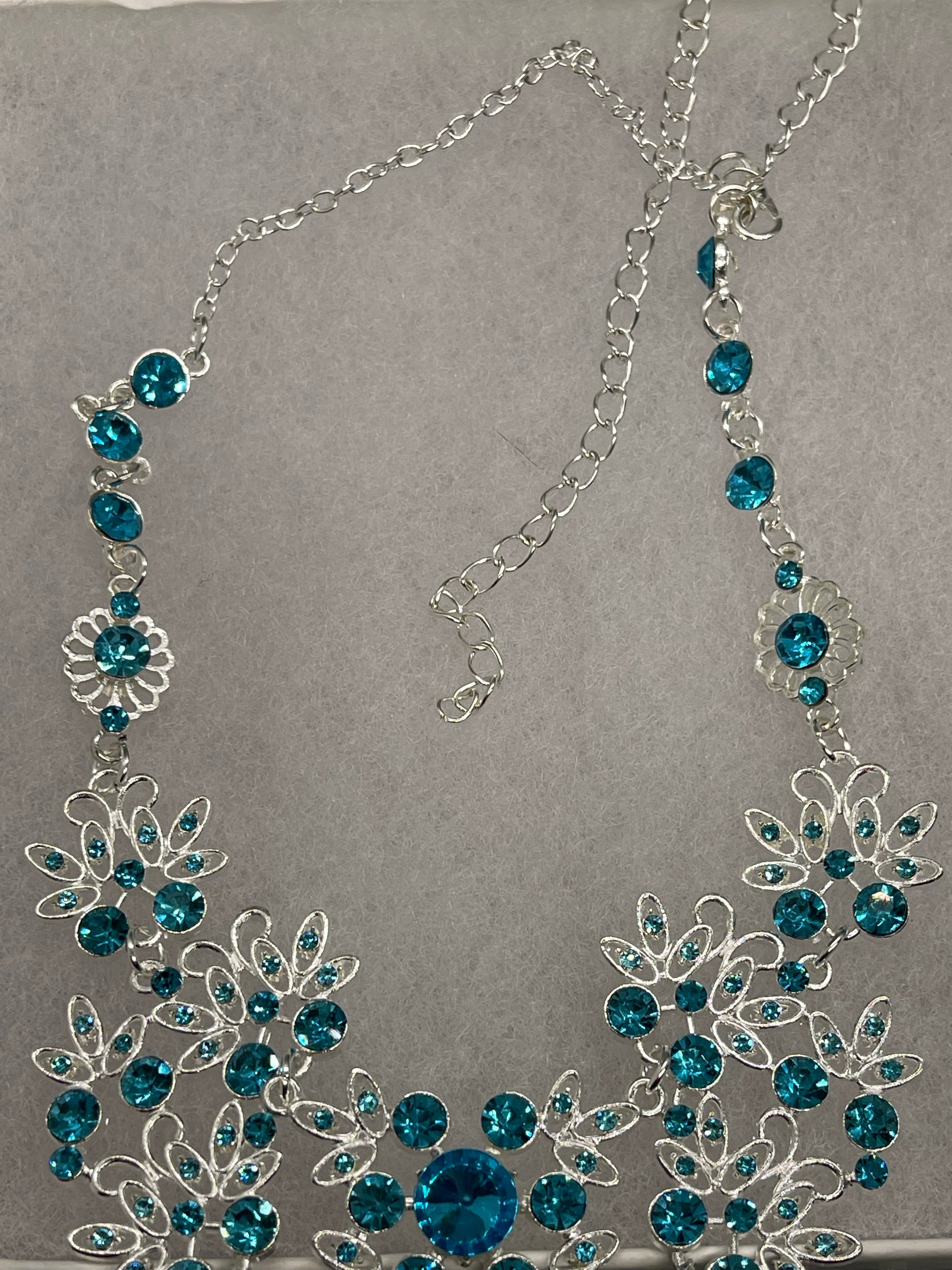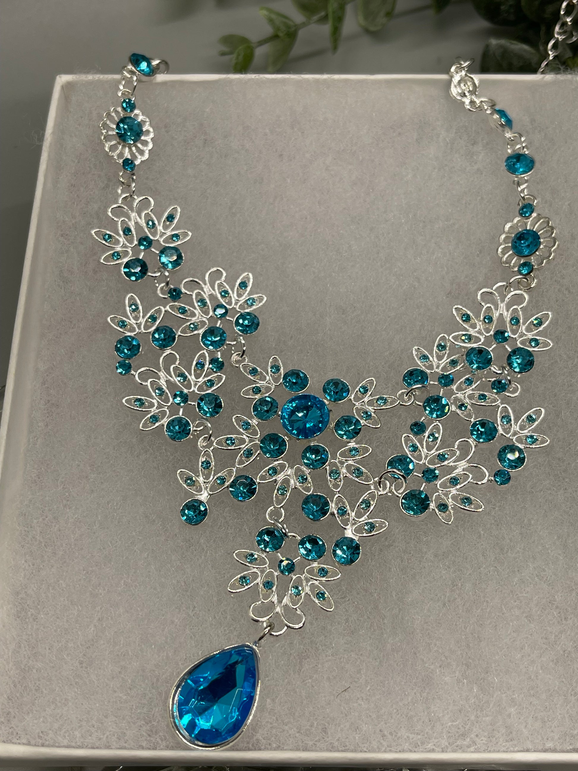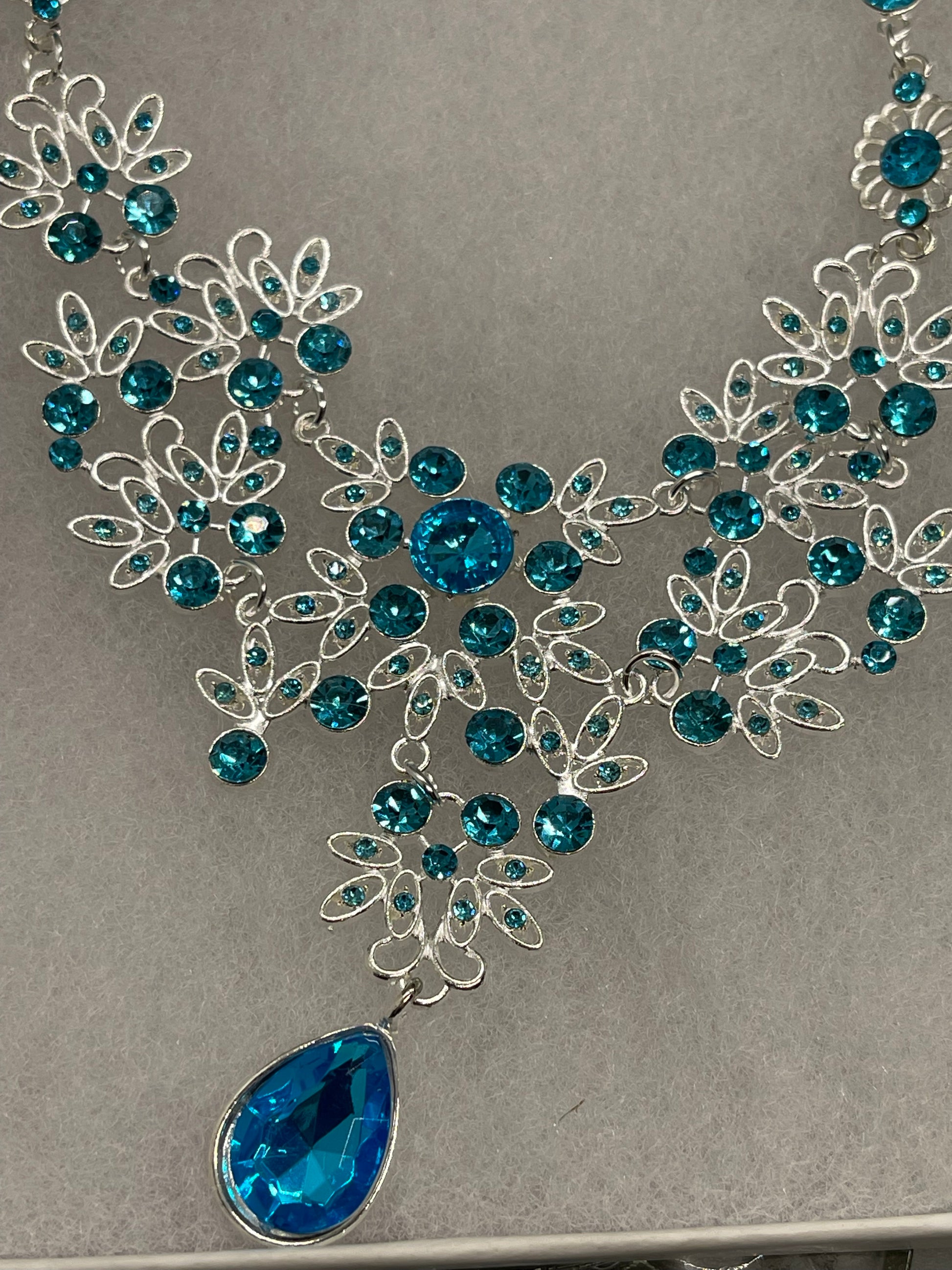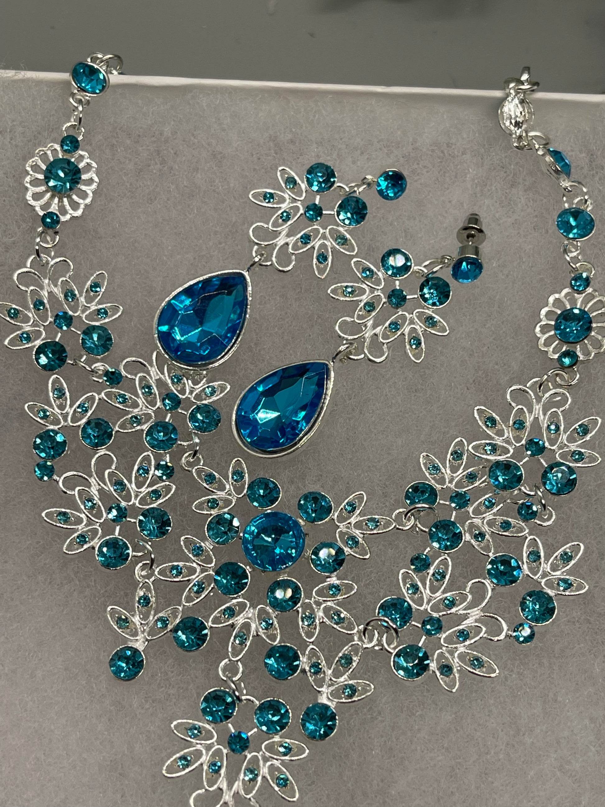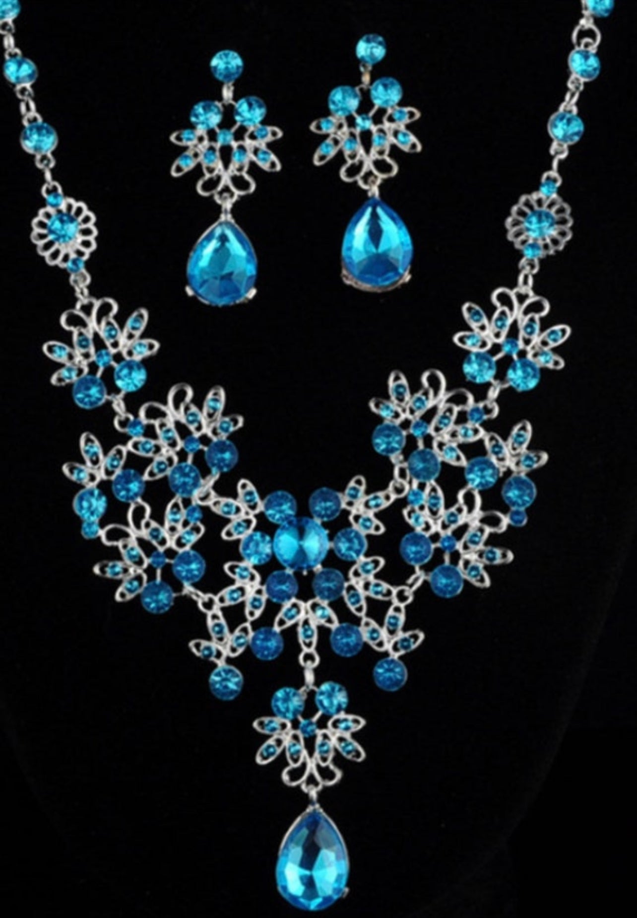 Teal rhinestone crystal necklace earrings set Rhinestone Jewelry Sets earring necklace wedding engagement formal party Prom sweet 16 set