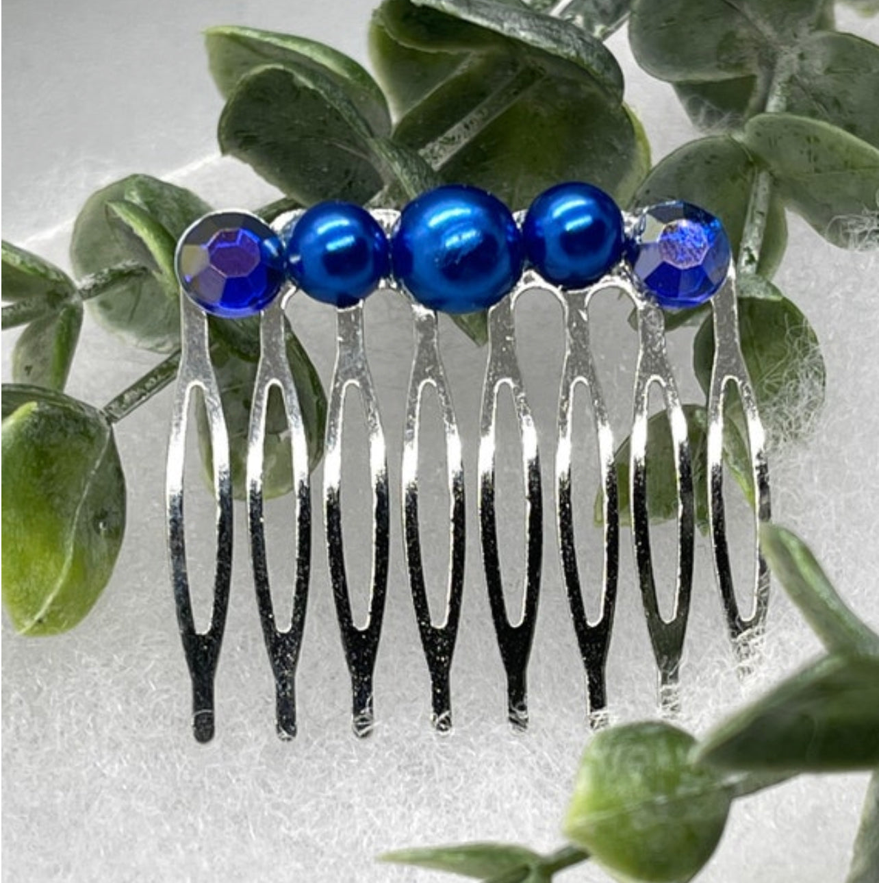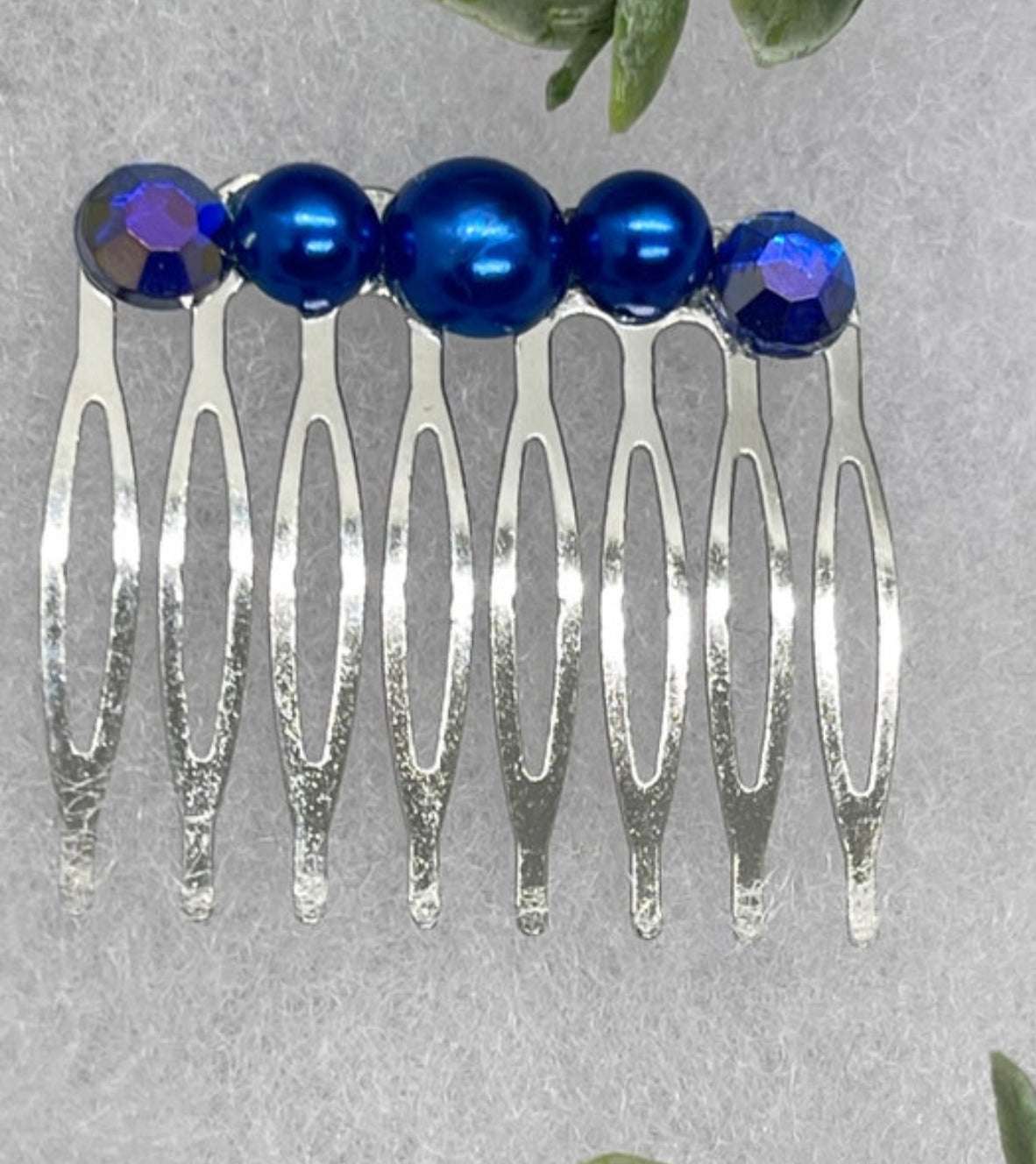 Royal blue faux Pearl crystal side comb approximately 2.0”long metal hair accessory bridal wedding Retro